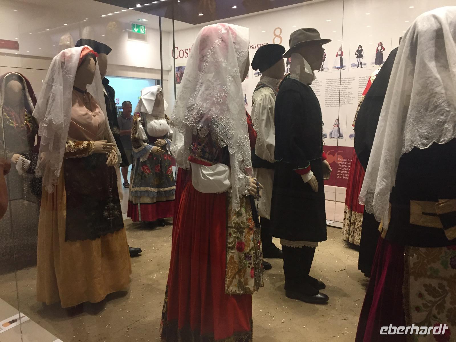 Entlang der Küste fuhren wir ins Landesinnere zum Städtchen Nuoro. Der Ort selbst ist eher unscheinbar, doch beherbergt er ein sehenswertes Museum, das Museo Etnografico Sardo, in dem es das sardische Kulturgut von den Anfängen bis heute zu bestaunen gibt. Prachtvolle Trachten, die noch heute in den Dörfern getragen werden, sind das Highlight des sehr gut gemachten Museums.Die Fahrt führte uns weiter nach Orgosolo. Die Murales, die berühmten Wandbilder haben Orgosolo über die Grenzen hinaus bekannt gemacht. Die zahlreichen Wandbilder, deren Stile von der Naiven Malerei über politische Motive bis zur abstrakten Kunst reichen, schmücken seit Ende der 1960er Jahre die Hauswände. Orgosolo liegt im zentralen Bergland, dem Herz Sardiniens. Das Gebirge gipfelt im Punta La Marmora, mit 1834 m der höchste Berg Sardiniens.
