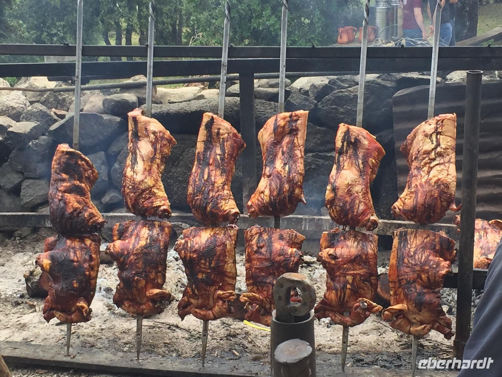 Die Barbagia ist die Welt der Hirten und wir freuten uns auf das bekannte Hirtenessen. Seit vor ungefähr 4000 Jahren Hirtenstämme nach Sardinien einwanderten, wird auf der Insel Vieh- und Weidewirtschaft betrieben. Mit der Inbesitznahme der Insel durch verschiedene Fremdherrschaften wurden die Hirten in das steinerne, unwirtliche Herz Sardiniens abgedrängt. Die Tradition, Sitten und Gebräuche der Hirten sind heute noch lebendig. Bei dem Hirtenessen konnten wir einen Einblick in die Spezialitäten des Inselinneren bekommen. Bei gegrilltem Lamm und Spanferkel, würzigem Pecorino Käse, Cupoletta (Süßigkeit) und süffigem Rotwein ließen wir es uns gut gehen. Durch die canti sardi, den traditionellen sardischen Chorgesängen bekamen wir einen Eindruck in die sardische Folklore. Dieses ebenfalls uralte sardische Kulturgut wird stets a cappella von einem vierköpfigen Männerchor, den Tenores, vorgetragen. Den Ballu Tundu tanzte Angela mit einem sardischen Hirten.