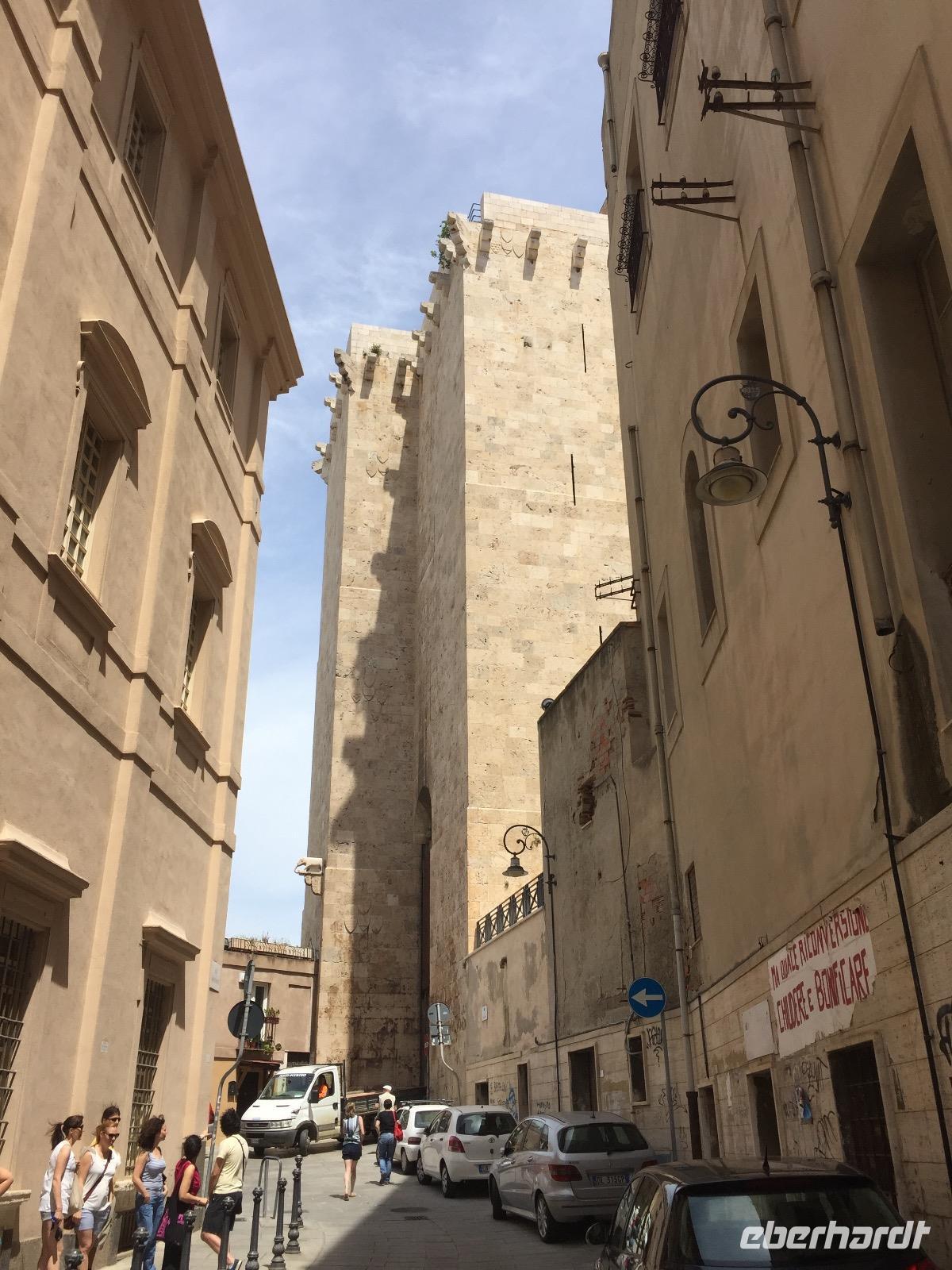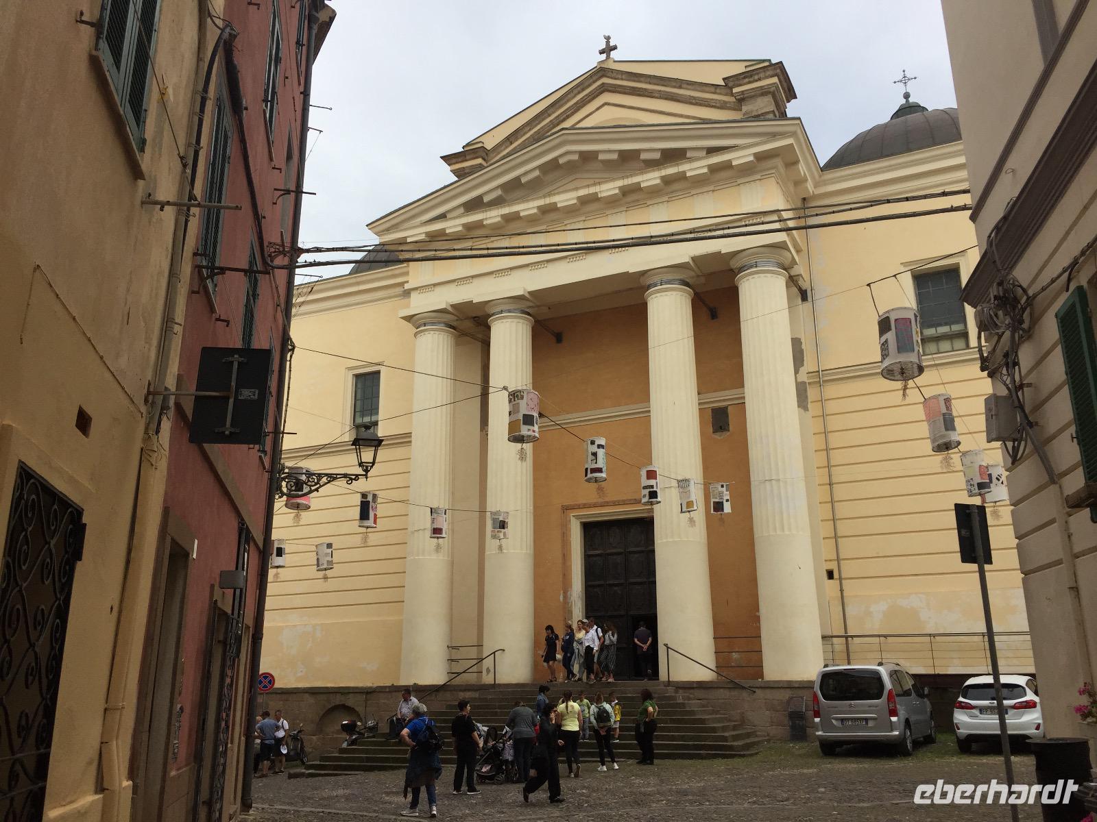 Wir starteten unseren Rundgang im Burgviertel, durch das Altstadttor, wo die alten Patrizierhäuser dicht bei einander stehen. Der Dom Santa Maria di Castello hat heutzutage eine romanisch-pisanische Fassade und wirkt hell und freundlich, gegenüber sahen wir das alte Rathaus der Stadt. Es ging weiter durch verwinkelte Altstadtgassen, ein Viertel das kaum noch bewohnt ist. Es dominieren Geschäfte, Galerien und Boutiquen. Wir verlassen die Altstadt durch den Elefantenturm mit seinem noch heute erhaltenen Fallgitter, er ist Stadttor und Teil der Stadtmauer. Die Terrazza Umberto war leider Baustelle und daher nichts los. Die Aussicht genießen wir dennoch.