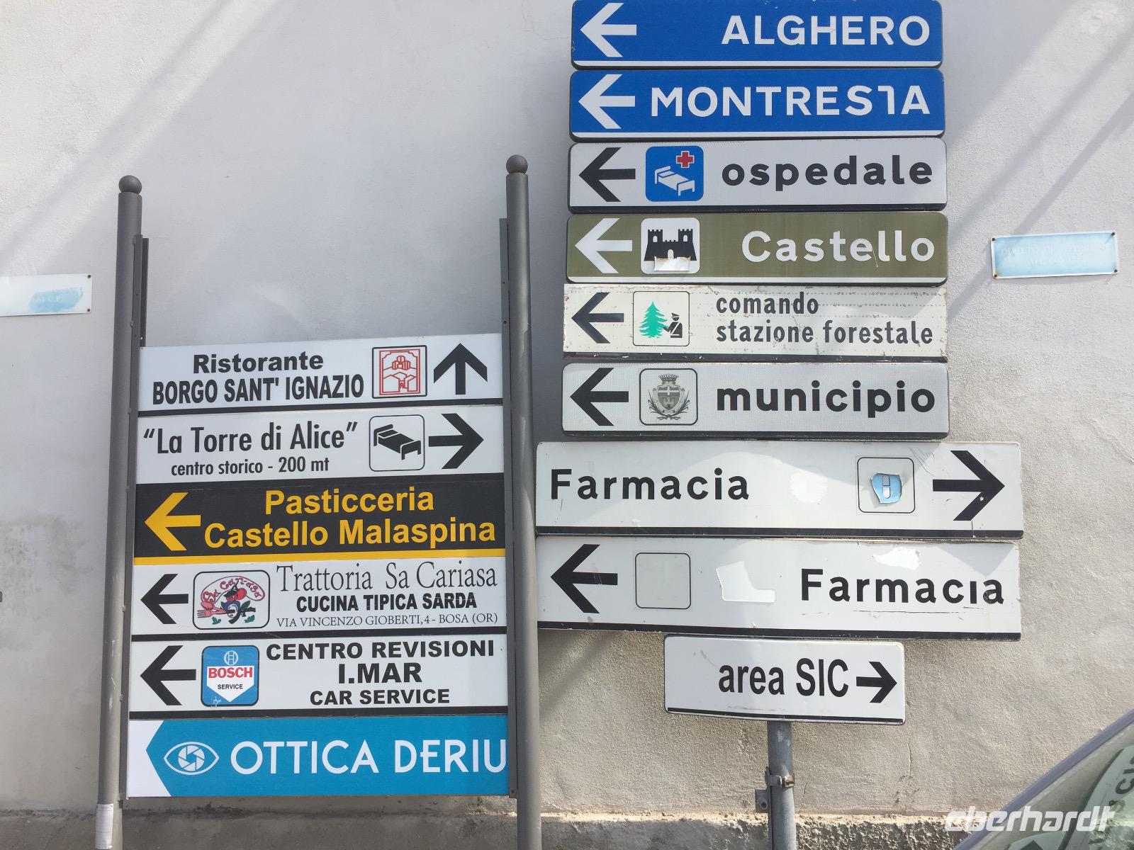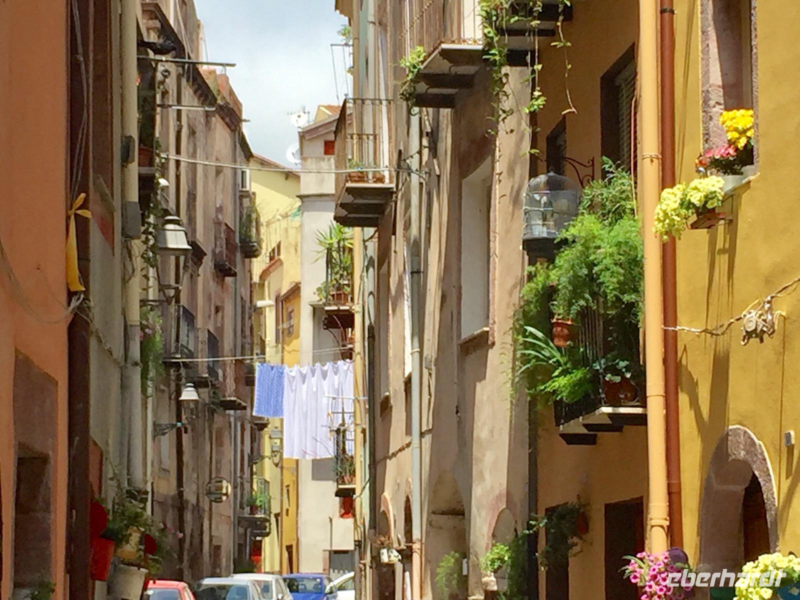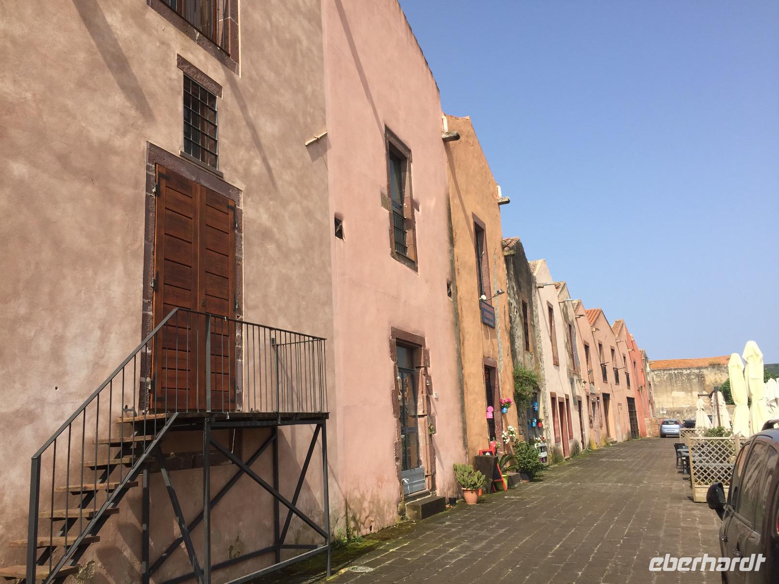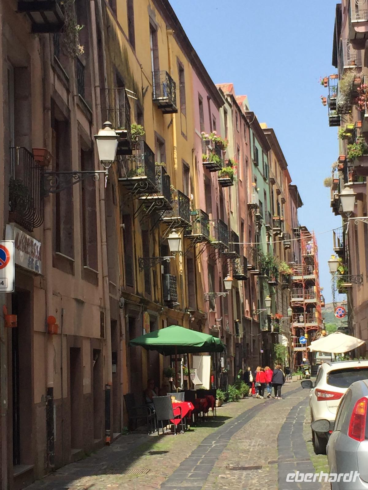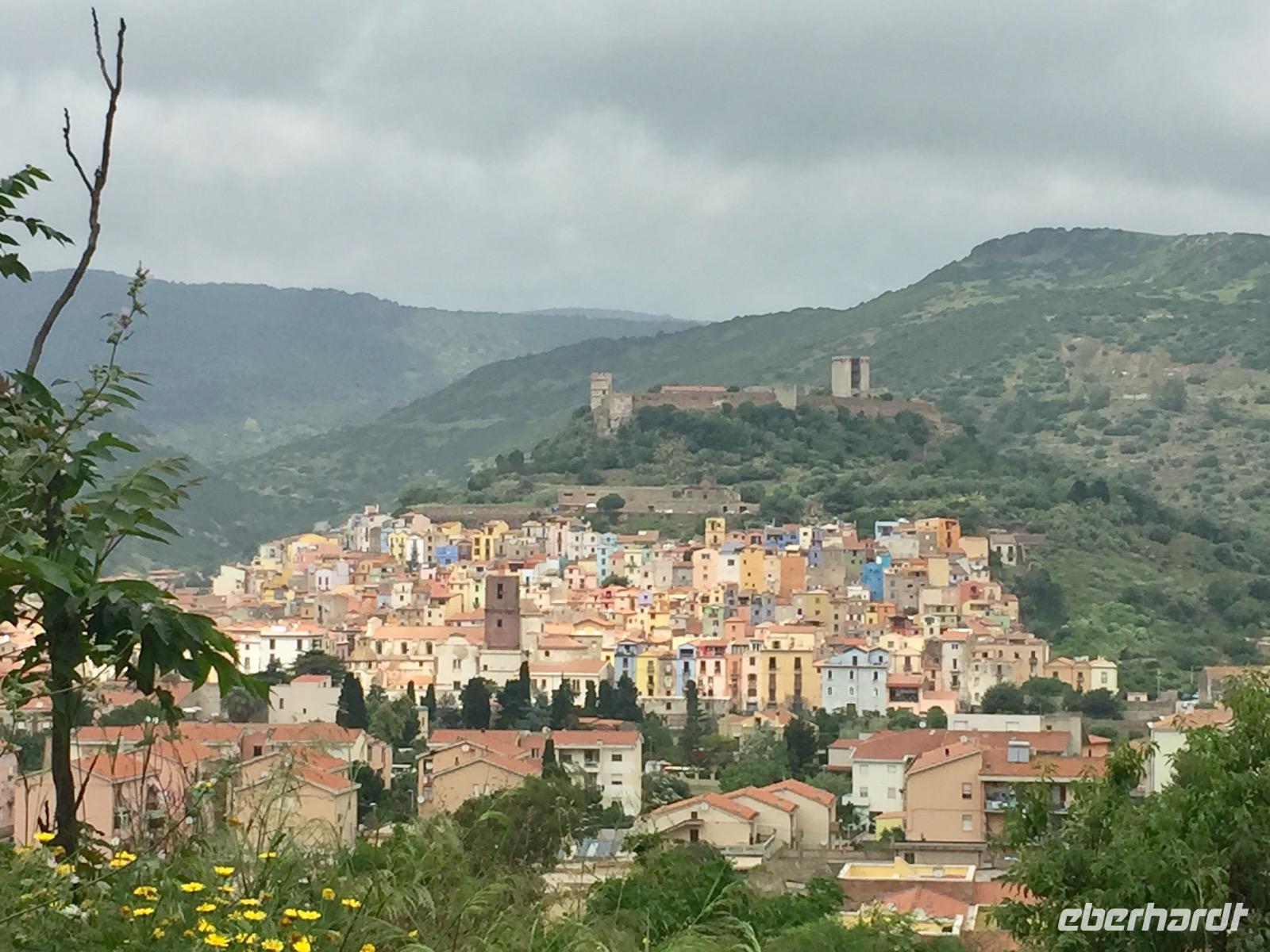 Bosa, am Fluss Temo gelegen, ist die einzige unmittelbar an einem Wasserlauf erbaute Stadt Sardiniens. Dank ihres malerischen, historischen Zentrums, der Lage am Temo, sowie der Burg Malaspina gilt Bosa als die schönste Stadt Sardiniens. Entlang des Temo Ufers, welches einst palmengesäumt war, dem Corso Vittorio Emanuele und durch die engen Gassen der Altstadt bummelten wir durch die Stadt. Am Fuße der Burg Serravalle angelangt, genossen wir einen schönen Blick auf die Dächer von Bosa.