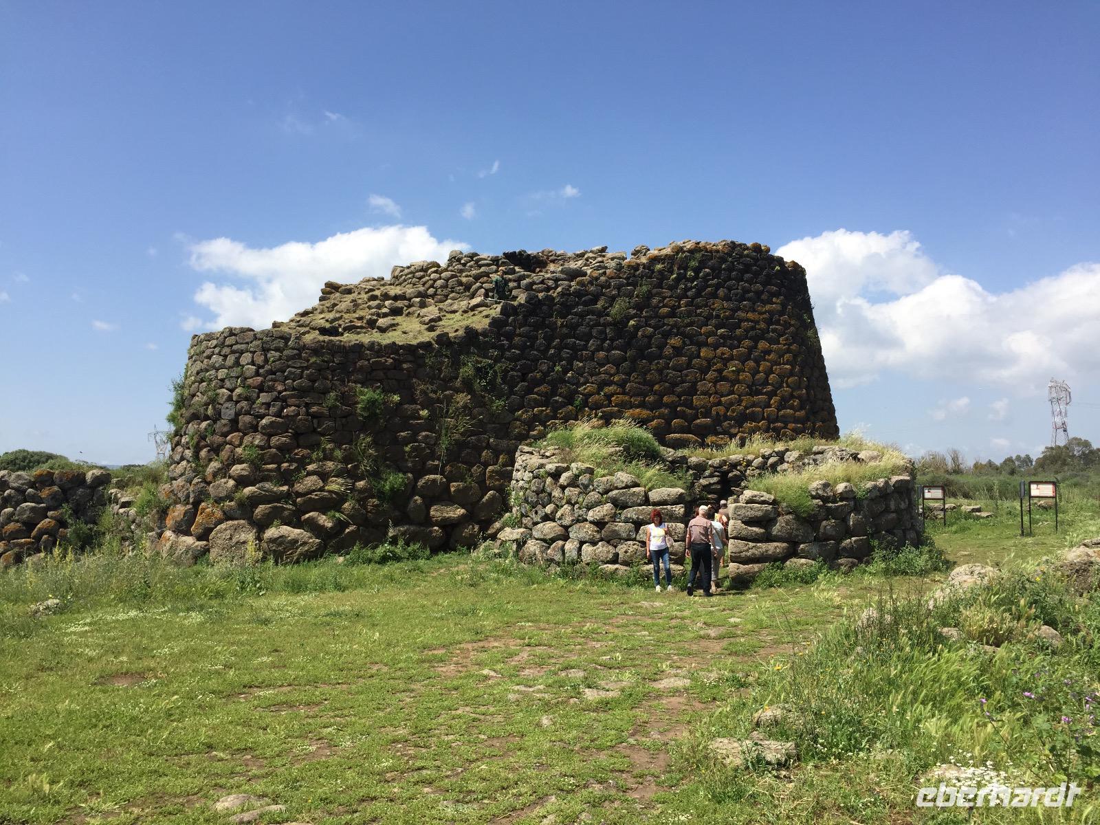 Am Nachmittag besuchten wir noch eines der Wahrzeichen von Sardinien, die Nuraghe Losa. Sie ist eines der zahlreichen archäologischen Überbleibsel im Valle dei Nuraghi, welches durch eine Vielzahl prähistorischer Sehenswürdigkeiten aufwartet. Dazu gehören die zahlreichen Nuraghen, die Wahrzeichen Sardiniens, aus dem 18.Jh bis 5.Jh vor Christus (Bronzezeit). Die Nuraghen waren runde Verteidigungsanlagen, bestehend aus dem Hauptturm und weiteren Nebentürmen, gesäumt von den Wohnhäusern des Dorfes. Auffallend ist die eigenwillige, runde Bauweise. Leider wurden später viele der ehemals 7000 Nuraghen aus Unwissenheit von der Bevölkerung zerstört, als sie im 19.Jh. Steine für den Bau der Straßen und Trockenmauern benötigten.