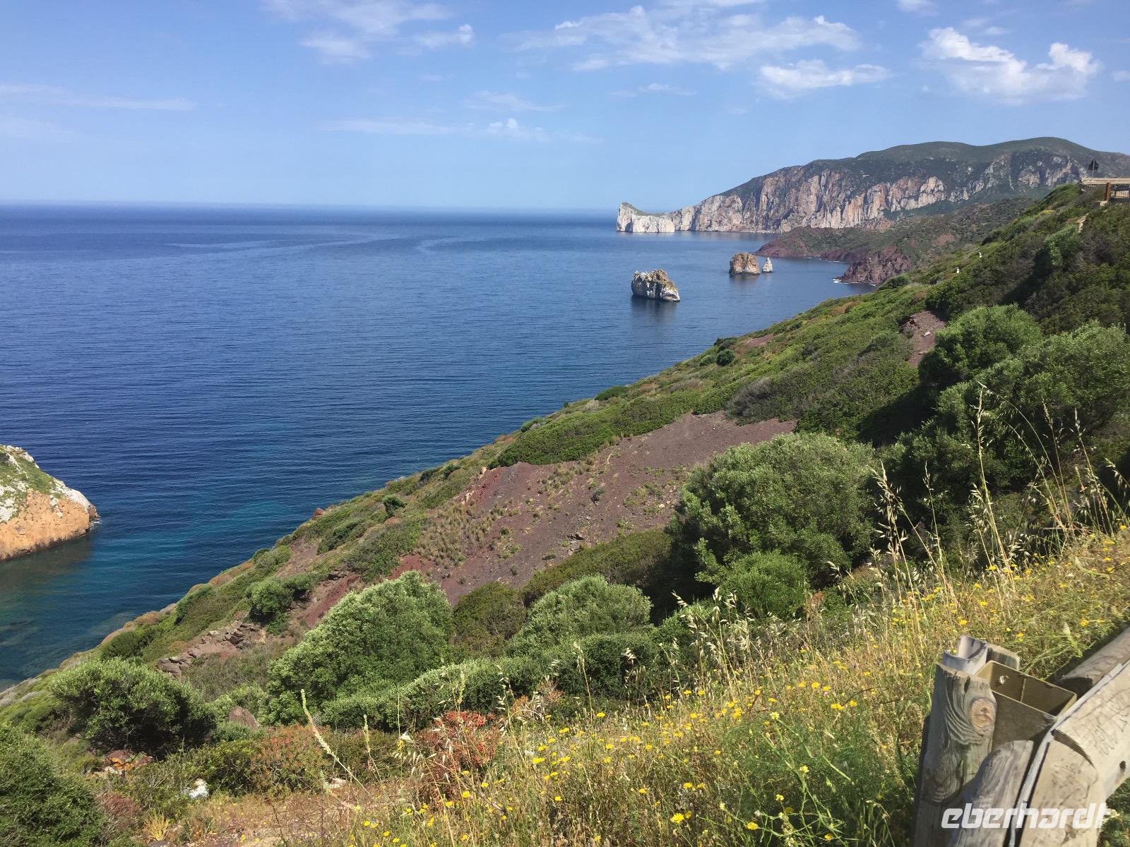Eine grandiose Landschaft erwartet uns zum Abschluss der Reise an der Südwestküste. Traumhafte Panoramaausblicke begleiteten uns den ganzen Tag. Wir sahen, dass der sardische Zuckerhut eigentlich ein Zuckerwürfel ist, doch die Lage im Meer vor der Küste erinnert doch ein ganz klein wenig an den Zuckerhut in Rio de Janeiro.