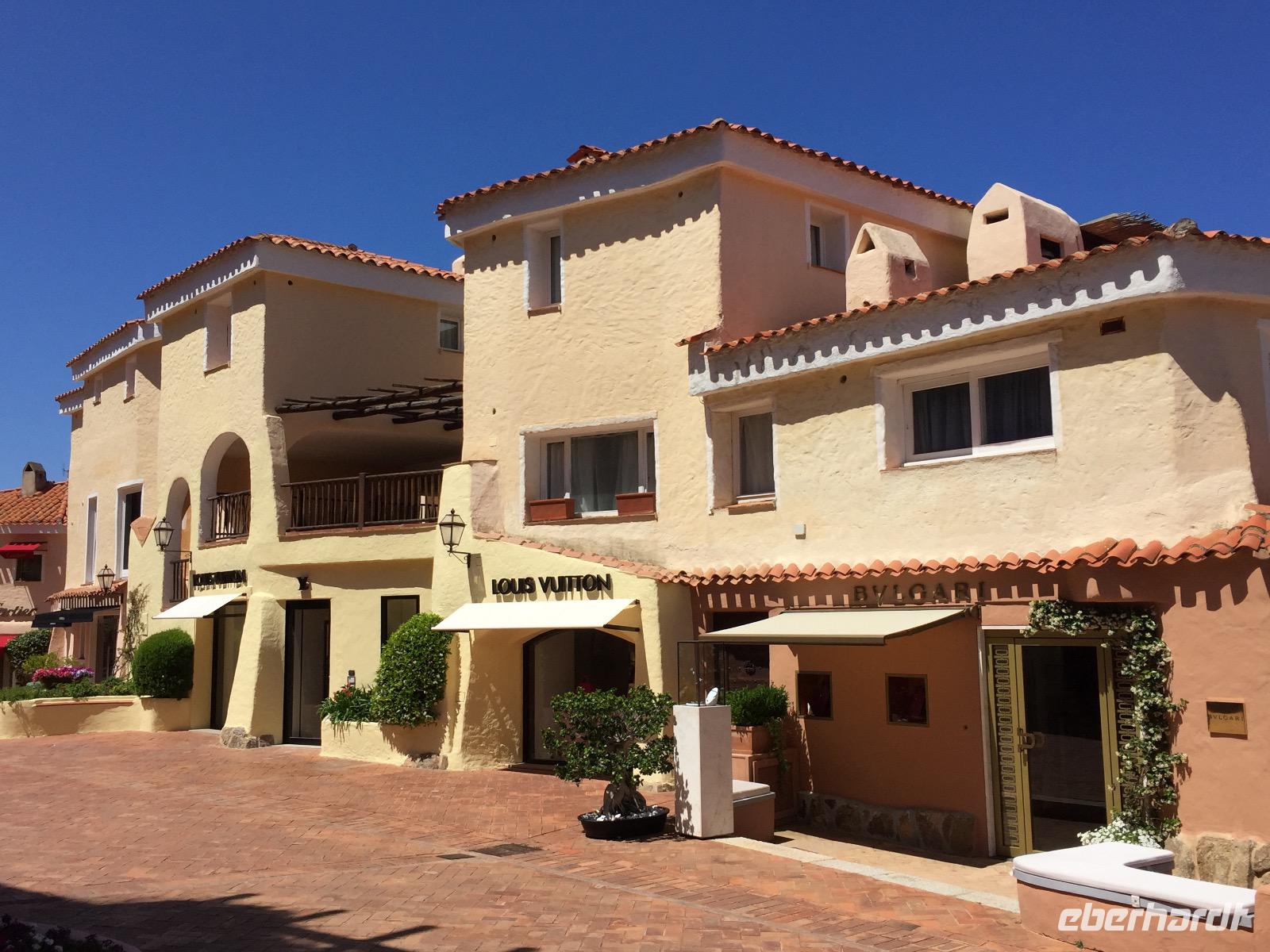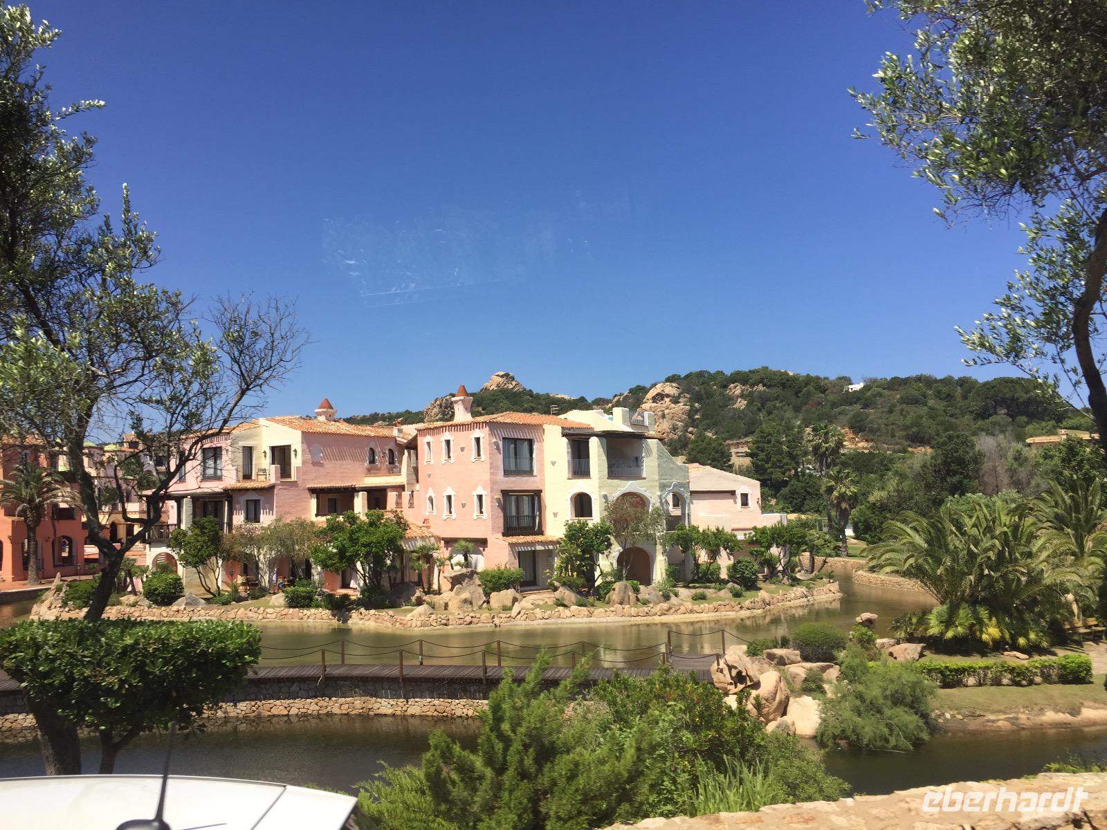 Abschließend führte uns die Fahrt nach Porto Cervo. Ganz bewusst komplett im typischen Baustil eines Dorfes gehalten, sind in den Häusern die weltbekannten Luxusmarken von Chanel bis Gucci angesiedelt. Die anschließende Rundfahrt mit einem Bähnchen, durch die grün mit Macchia bewachsene Landschaft, zeigte die Prachtvillen der Prominenz, natürlich oft hinter hohen Mauern versteckt.