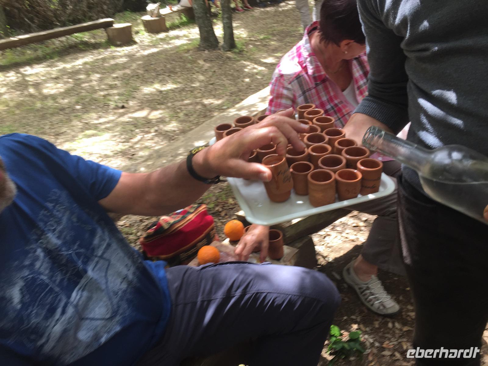 Jetzt waren alle hungrig und das rustikale Picknick mit Käse, Salami, Oliven, Tomaten und sardischem Brot im schattigen Pinienwald kam gerade recht. Der süffige Rotwein hob die Stimmung und gut gelaunt machten wir uns auf den Rückweg mit der Fähre.