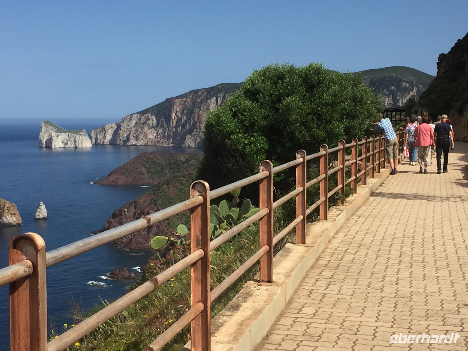 Wir beschlossen kurzfristig und wetterbedingt zunächst mit dem Bus zum Capo Caccia zu fahren, sodass wir die Sicht auf das „Jagdkap" genießen konnten, bevor sich der Himmel zuzog und Regenwolken breit machten. Wir genossen den Blick auf die gesamte Bucht von Alghero sowie die Insel Foradada.