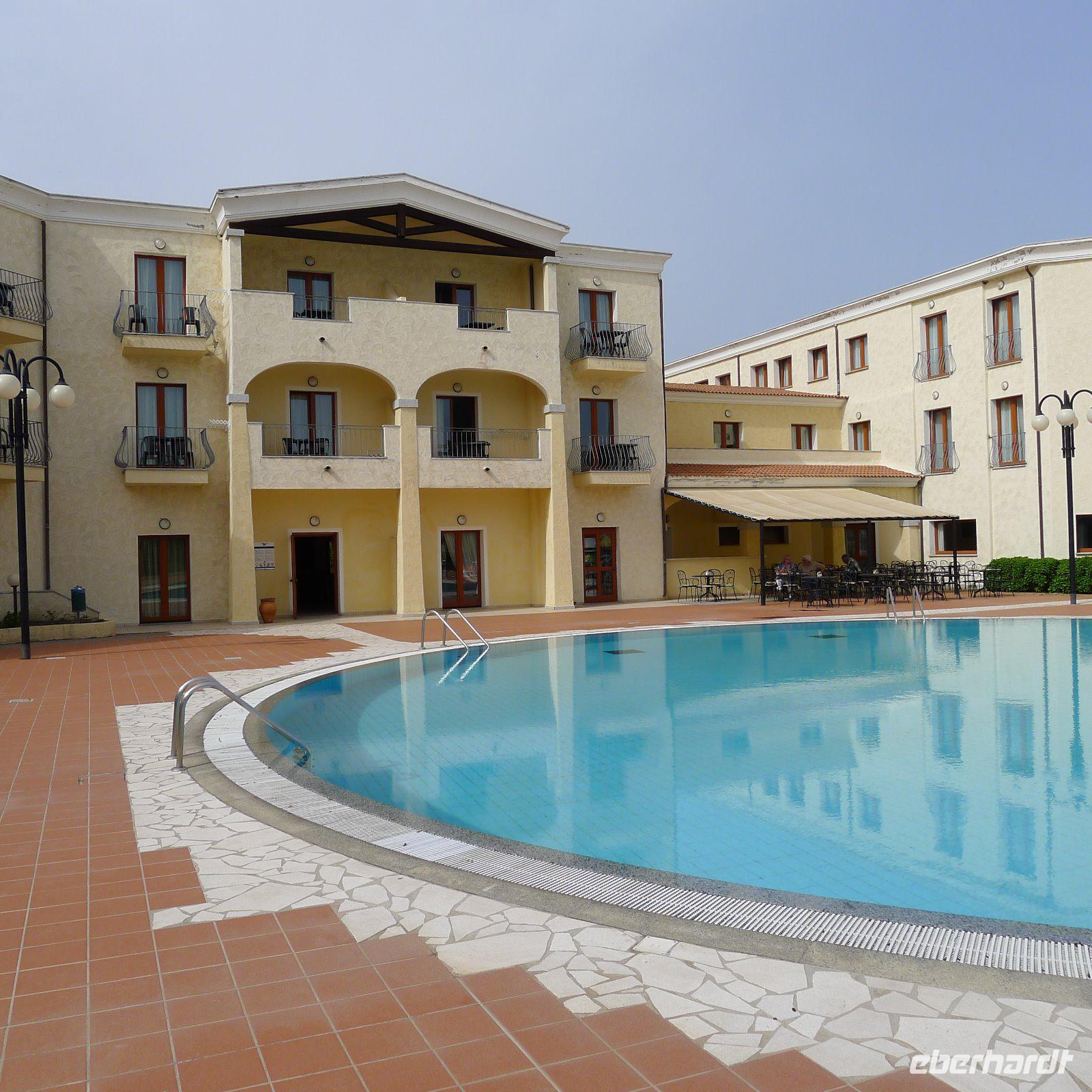 Gut gelaunt setzten wir unsere Fahrt fort. Detlef stimmte uns auf dem Weg zur Nuraghe Losa schon einmal auf das Thema ein und erläuterte uns anschaulich diese Kultur und wir lernten dabei auch, dass das Wort ‚Nuraghe' ein sardisches Wort für eine ‚Steinansammlung' ist. Die Wohntürme dieser Kultur wurden also als ‚Steinansammlungen' bezeichnet und die Kultur hat man die ‚Nuraghenkultur' genannt, also die Kultur der Steinansammlungen. Von der Anlage, die uns erwartete, waren wir dann auch sehr beeindruckt und die meisten von uns kletterten die Wendeltreppe im Inneren des Bauwerks nach oben bis auf die Spitze des Turmes. Nach einer Kaffee- und Eispause ging es weiter. Am späten Nachmittag erreichten wir unser Hotel in der Nähe von Cagliari, inmitten einer großzügigen Parkanlage gelegen und mit verlockendem Swimmingpool. Wie fast jeden Tag blieb vor dem Abendessen noch genügend Zeit für individuelle Unternehmungen oder um sich auszuruhen.
