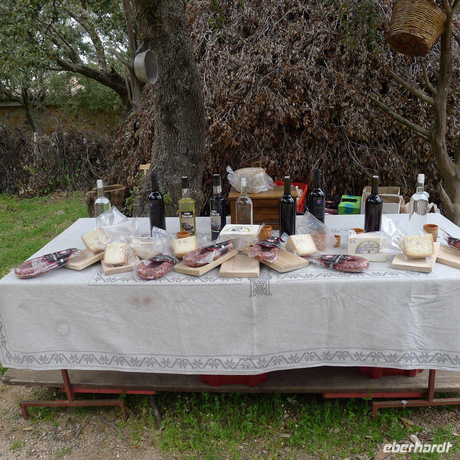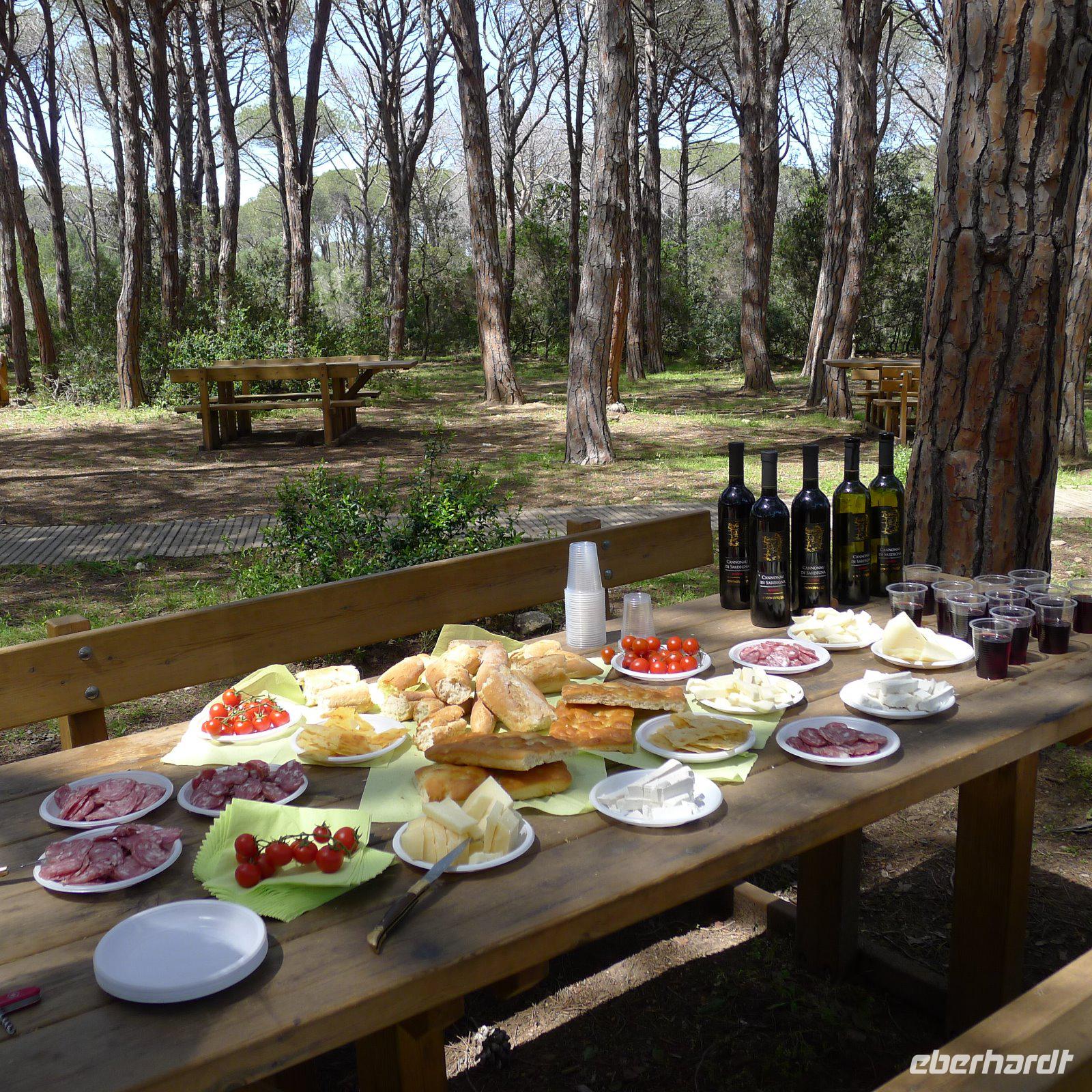 Rasch war ein kleines Picknick aufgebaut und unter freiem Himmel schmeckten sardische Käse, sardischer Rotwein und sardische Salami besonders gut. Dazu gab's ein knuspriges, frisches Brot.