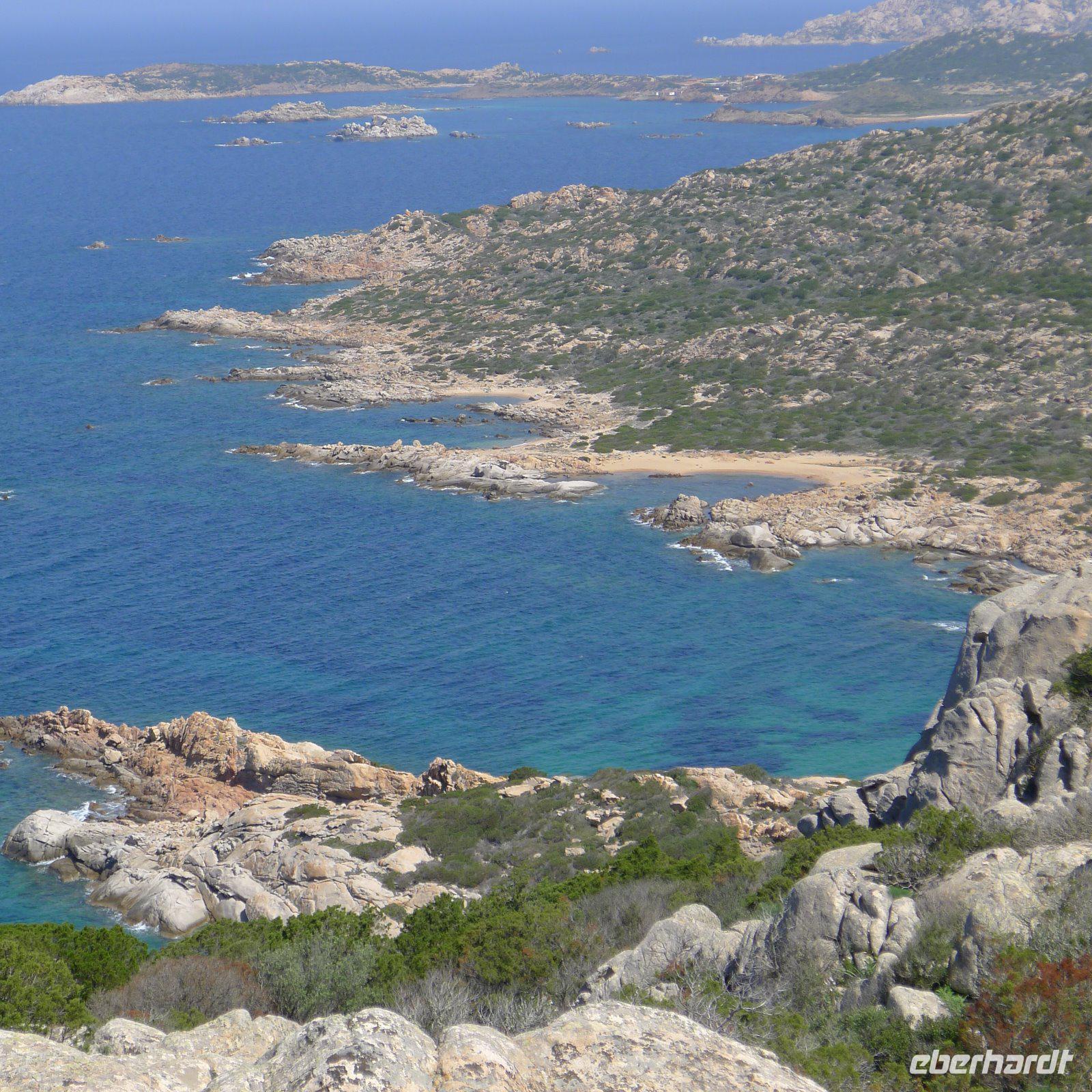 Wieder ein herrlicher Morgen! Schon nach kurzer Zeit erreichten wir einen Aussichtspunkt, von dem aus man viele Inseln des Arcipelago della Maddalena überblicken konnte, ein unvergesslicher Anblick bei dieser Morgenstimmung!