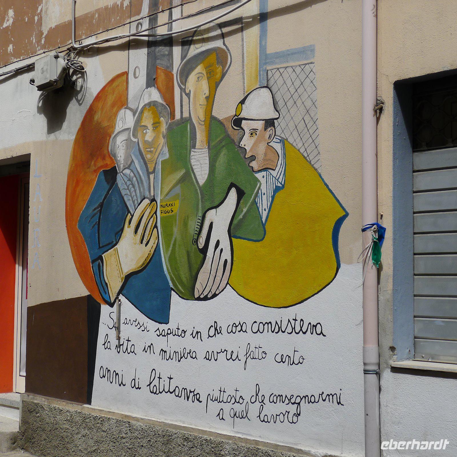 Entlang der Küste ging unsere Fahrt ins Landesinnere zum Städtchen Nuoro. Auf der Fahrt dorthin bereitete uns Detlef schon auf die Barbagia vor, eine Region der Hirten, in der auch heute noch alte Traditionen und Bräuche lebendig sind. Detlef schlug uns eine Fahrt auf den Monte Ortobene vor, von dem aus wir einen weiten Rundblick hatten. Nach kurzer Fahrt erreichten wir dann auch schon Orgosolo. Das kleine und eher unscheinbare Örtchen hat etwas ganz Besonderes zu bieten, die Murales. Was hat es damit auf sich? Die Murales sind kunstvolle Wandbilder in ganz unterschiedlichen Stilen, die verschiedene Themen illustrieren. Die Themen reichen von Ereignissen, die die Menschen beschäftigt haben über politische Themen bis hin zu Fragen, die mit dem Umweltschutz zu tun haben. Phantasievolle Gebilde schmücken seit Ende der 1960er Jahre unzählige Hauswände im ganzen Ort. Und jetzt war auch das ersehnte Mittagessen bei den Hirten nicht mehr fern. Die Viehwirtschaft hat eine lange Tradition auf Sardinien. Von Detlef erfuhren wir, dass die Hirten durch viele Jahrhunderte hindurch und durch viele Völker, die die Insel eingenommen haben, immer mehr in das Landesinnere zurückgedrängt worden sind.