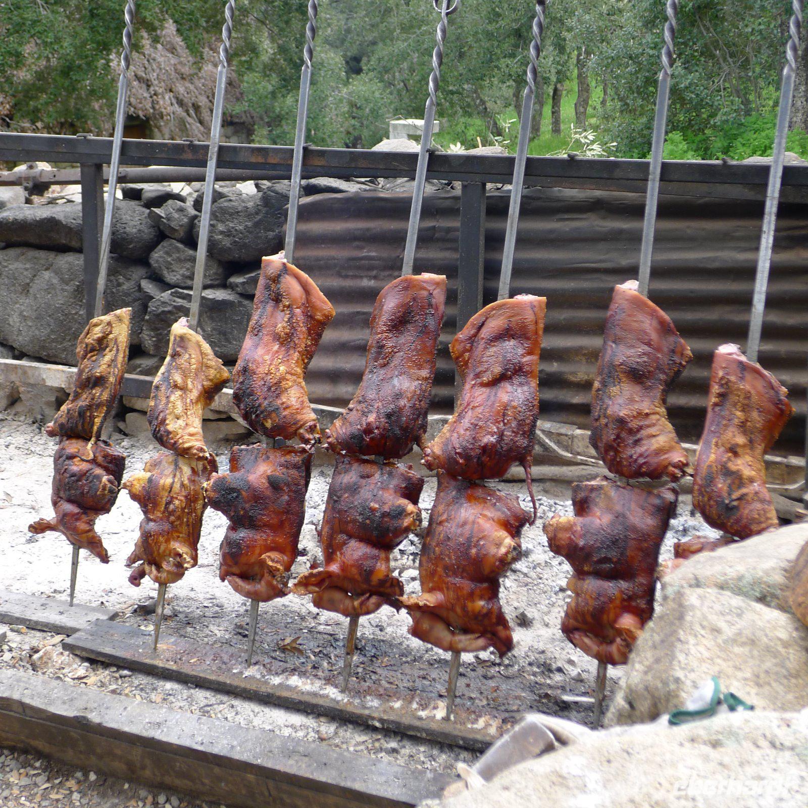 Das Hirtenessen und die Bekanntschaft mit den Hirten ermöglichte uns einen kleinen Einblick in deren Leben. Das über Stunden langsam gegrillte Spanferkel, lange gereifter sardischer Pecorino (Schafskäse) und ganz viel Rotwein ließen uns die Zeit vergessen. Unter Bäumen im Schatten konnte man es gut aushalten und es schmeckte allen vorzüglich. Zum Abschluss bekamen wir noch sardische traditionelle Gesänge und Tänze vorgeführt. Die Gesänge werden von den Tenores, einem Männerchor, bestehend aus vier Männern, vorgetragen.