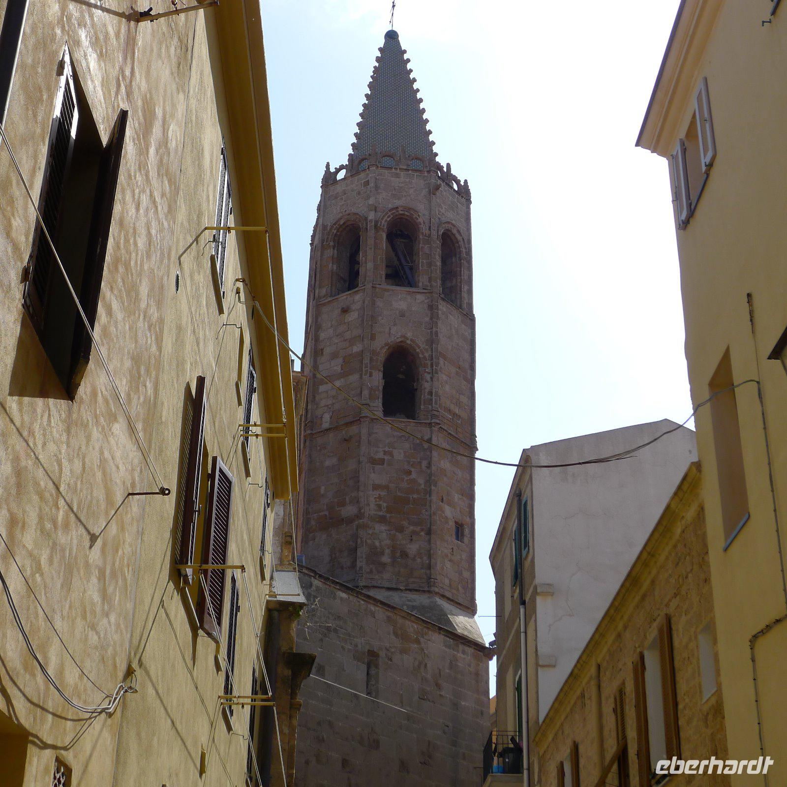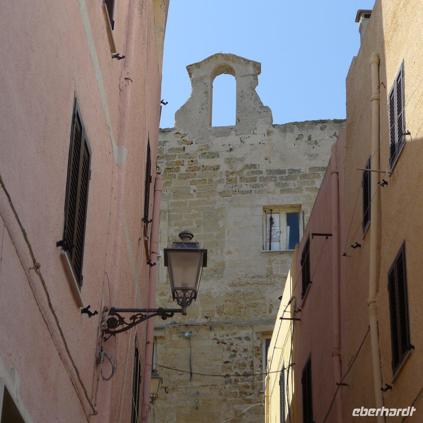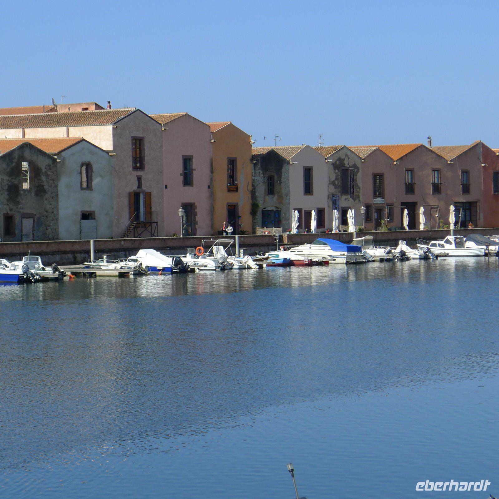 Nur eine klitzekleine Busfahrt und schon waren wir am Hafen von Alghero angekommen. Wieder ein strahlend blauer Himmel und viel Sonne! Wir freuten uns darauf, die Stadt, die zu den attraktivsten Sardiniens gehört, kennen zu lernen. Detlef unternahm mit uns einen gemütlichen Spaziergang, der am Hafen begann. Hier legen die Boote zum Capo Caccia ab und wir machten uns schon einmal mit der Ablegestelle unseres Bootes vertraut, denn am Nachmittag sollte es ja zur Neptungrotte gehen. Durch die mächtigen Mauern der Bastione della Maddalena ging es mitten in die Altstadt hinein. Wir ließen uns durch die Gassen treiben, besuchten die Cattedrale di Santa Maria und die Kirche San Francesco. Ihr Kreuzgang ist ein Ort der Stille und man verspürt Lust, sich inmitten der alten Säulen niederzulassen und sich seinen Gedanken hinzugeben. Überall in der Stadt sind Spuren der Geschichte zu erkennen. Alghero war lange eine Hochburg der Katalanen und auch heute noch sprechen viele Einwohner Algheros einen katalanischen Dialekt. Deshalb ist es auch nicht verwunderlich, dass die Straßenschilder in der Altstadt zweisprachig sind. Eine helle und freundliche Stadt mit vielen Cafés und netten Geschäften und romantischen Gassen mit Kopfsteinpflaster. Fast alle Wege führen zum glasklaren Wasser des Meeres. Überall in der Stadt konnten wir an den Häuserfassaden große Plakate sehen, die Menschen zeigten, die über 100 Jahre alt waren. Man zeigt sie in idyllischer Landschaft oder mit besonderen Kostümen, ein eindrucksvolles Projekt! Nach einer Kaffeepause mit Meerblick entließ uns Detlef in die Freizeit, aber nicht ohne uns vorher noch mit vielen Tipps versorgt zu haben.