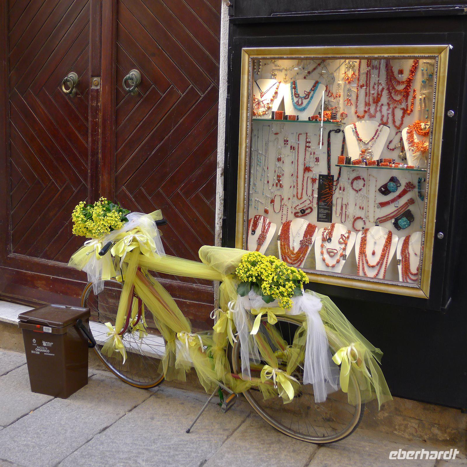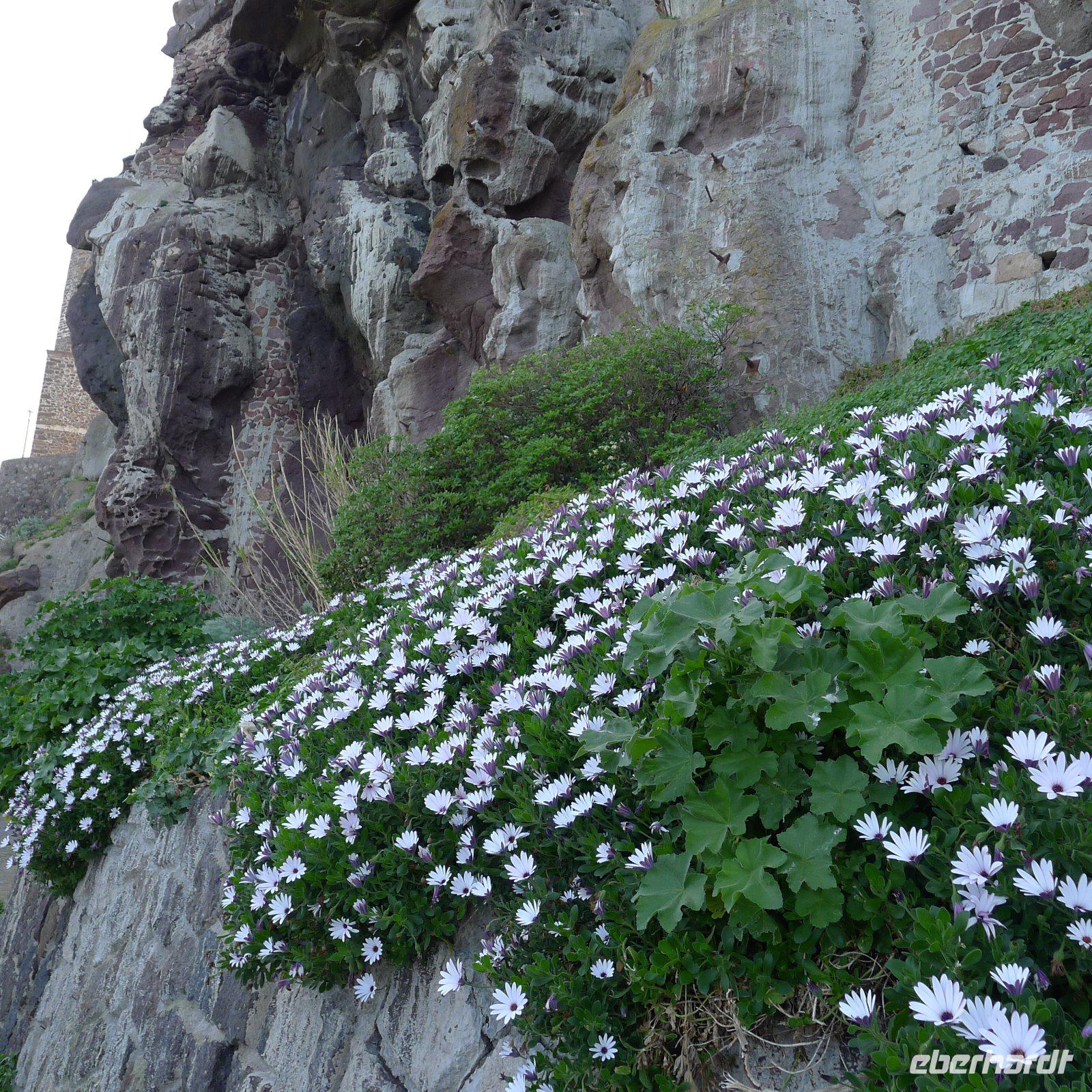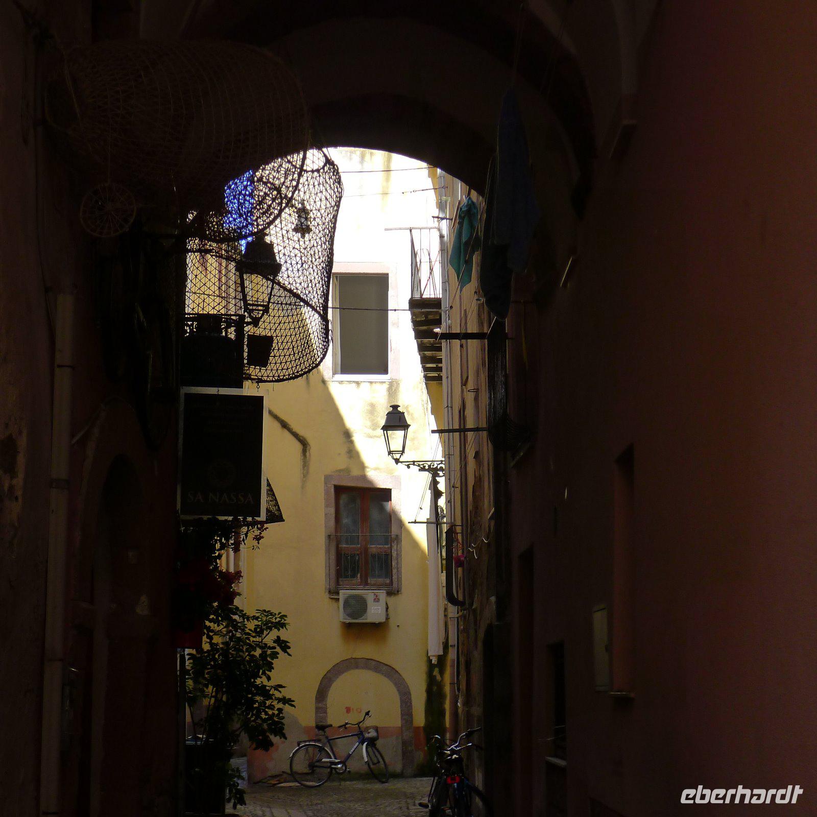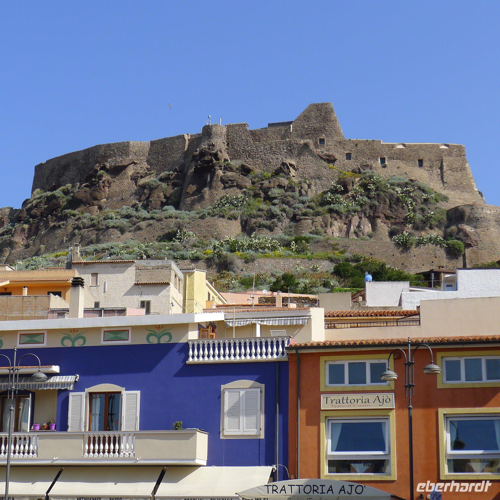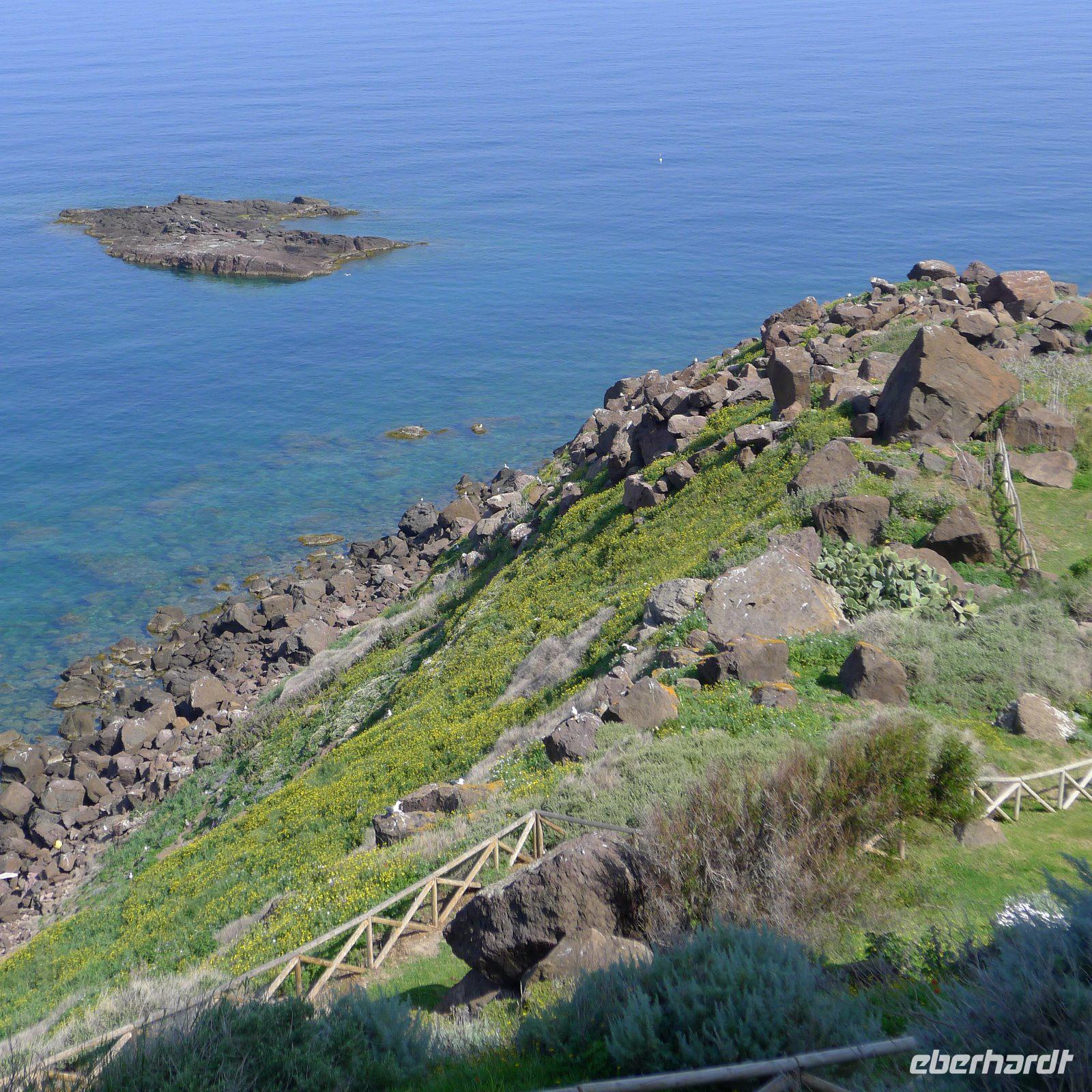 Heute ging es von Alghero aus durchs Landesinnere nach Norden. Ab Porto Torres erwartete uns eine der vielen schönen Strecken entlang der Küste. Schon von Weitem erblickten wir die Burg von Castelsardo, die den Ort überragte. Dort hinauf sollte uns der Weg führen. Am Hang entlang mit traumhaftem Blick über den Hafen schlängelte sich der romantische Pfad zur Kirche, die wir besichtigten. Durch schmale, blumengeschmückte Gassen ging es auf und ab und mitten in solch einer Gasse ließen wir uns bequem nieder zum morgendlichen Cappuccino.