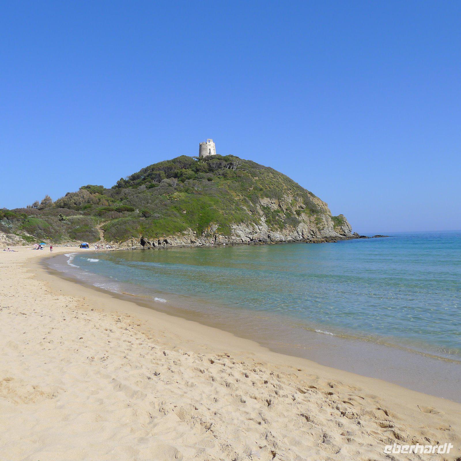 Am frühen Nachmittag bestiegen wir wieder unseren Bus und Salvatore chauffierte uns durch verschlafene Dörfchen bis an die Costa del Sud. Ihr folgten wir im warmen Licht der Nachmittagssonne bis zum herrlichen Strand in Chia. Unterwegs legten wir noch einen Fotostopp ein. Schließlich sieht man nicht alle Tage den südlichsten Punkt Sardiniens, das Capo Teulada.
