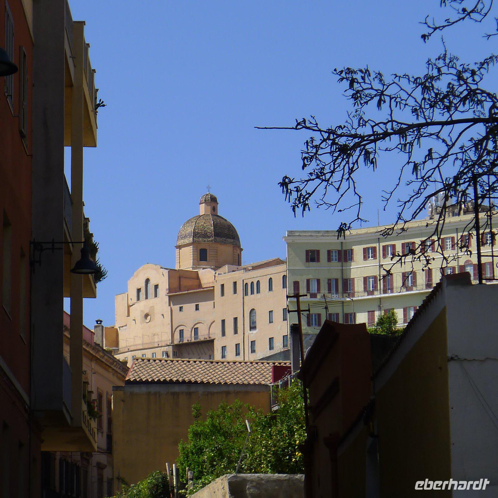 Er wollte uns unbedingt gerne zuerst den größten Wallfahrtsort auf Sardinien zeigen. Die römisch-katholische Basilica di Bonaria und die alte Wallfahrtskirche Santuario di Bonaria haben uns alle sehr beeindruckt. Der Ausblick vom Monte Urpinu reichte in alle Richtungen, weit über das Meer, aber auch über die Altstadt Cagliaris. Bevor wir diese erkunden sollten, stand aber noch ein Besuch in einer der Markthallen Cagliaris auf unserem Programm. Das Angebot war überwältigend. Nur in der Fischhalle wurde unseren Augen nicht ganz soviel geboten. Anscheinend hatten die Fischer keinen großen Fang getan oder war das vorangegangene Wochenende schuld? Um die Altstadt zu erreichen, hieß es jetzt erst einmal das Burgviertel Castello zu ‚erklimmen'. Schmale Gassen durchziehen dieses Viertel. Uns fielen sogleich die üppig mit Blumen geschmückten Balkone auf. Und so erfuhren wir, dass die Einwohner ihre Balkone gerade für einen Wettbewerb schmückten. Soviel Phantasie und Kreativität, man konnte sich gar nicht satt sehen! Und viele versuchten, sich die eine oder andere Idee einzuprägen, um sie eventuell zu Hause auf dem heimischen Balkon umzusetzen. Der Besuch des Domes Santa Maria di Castello durfte natürlich nicht fehlen. Er beherbergt die Kanzel mit den vier Löwen, die ursprünglich für den Dom zu Pisa geschaffen worden ist. Man hat sie Cagliari als Geschenk überreicht und so schmückt sie nun den Dom von Cagliari.
