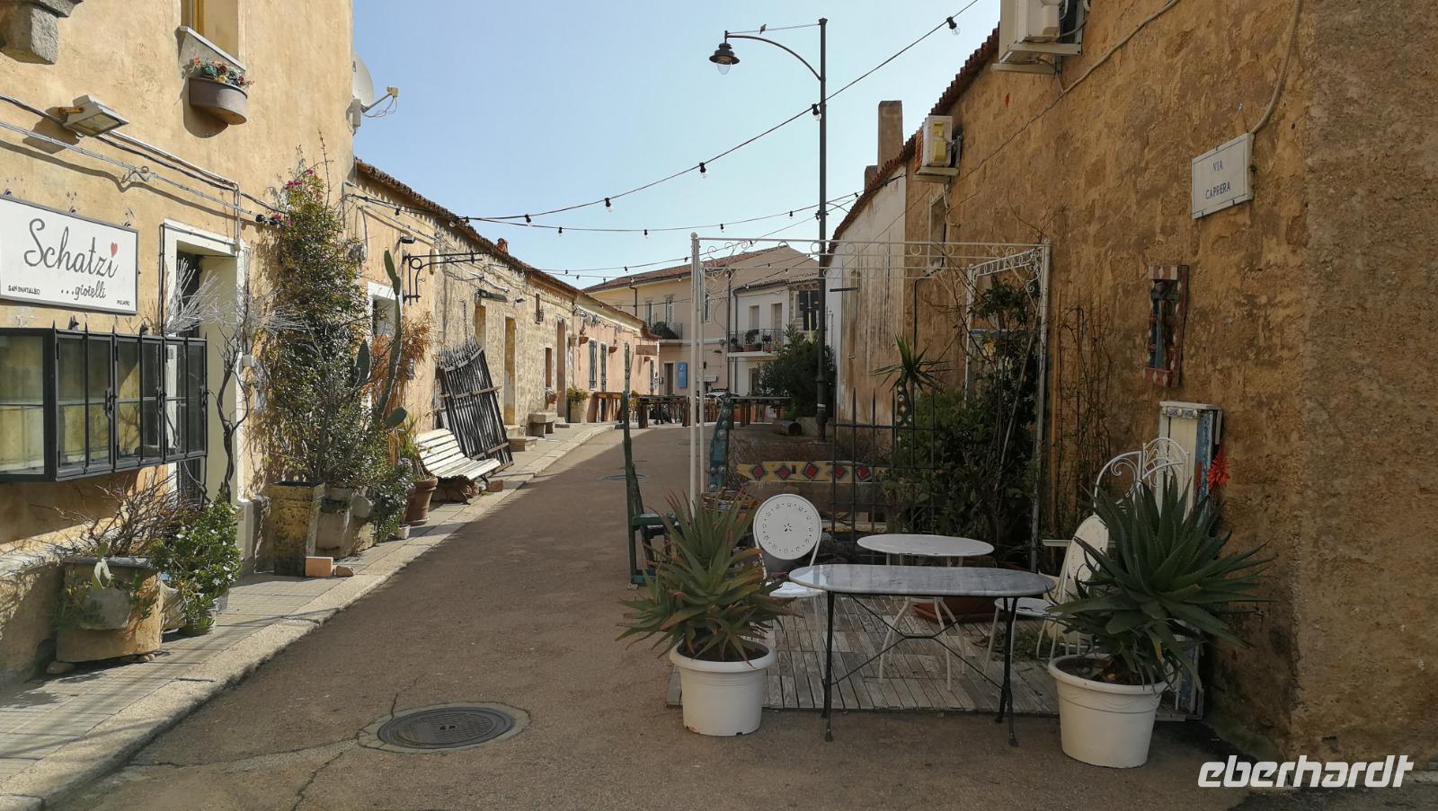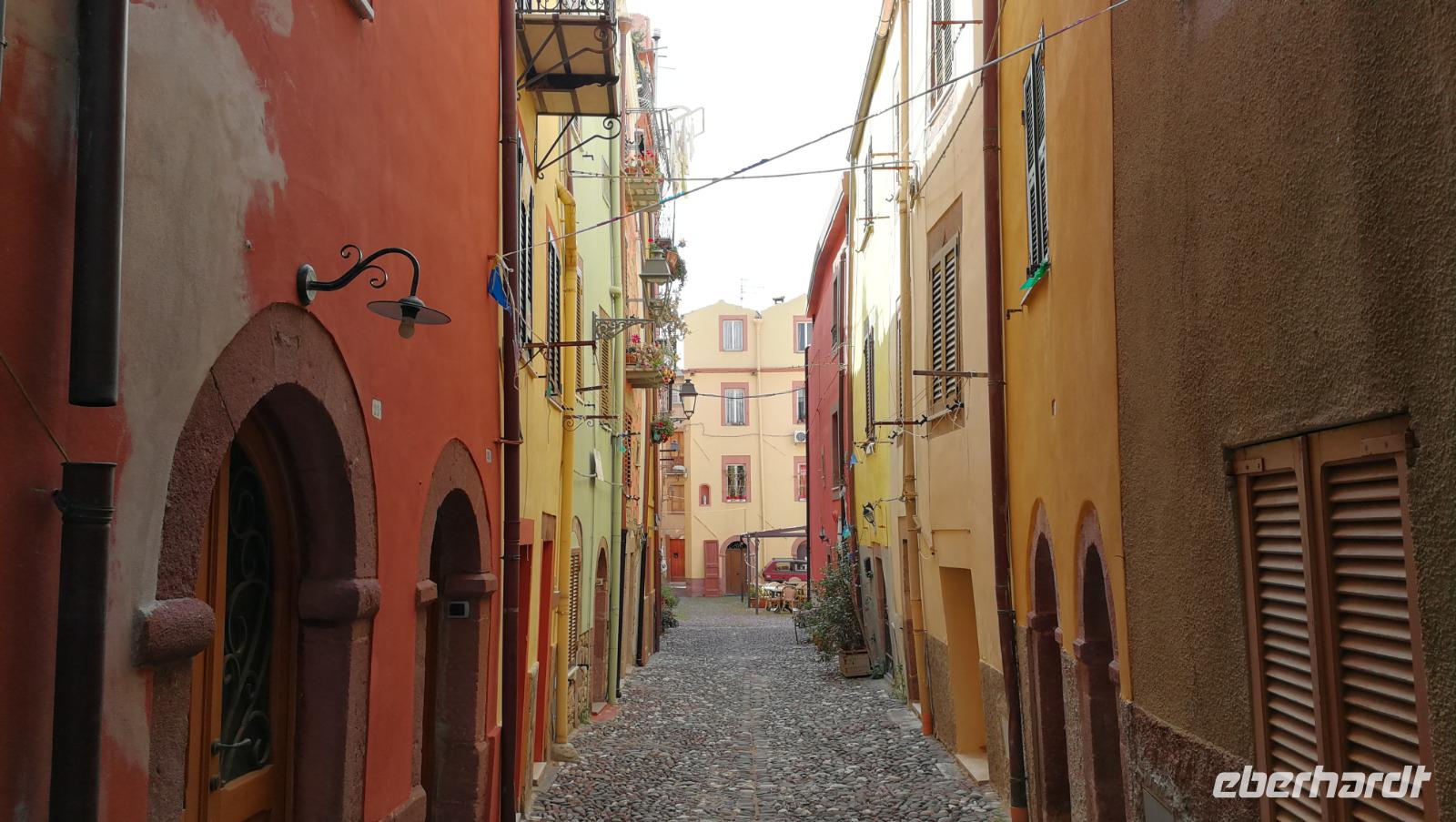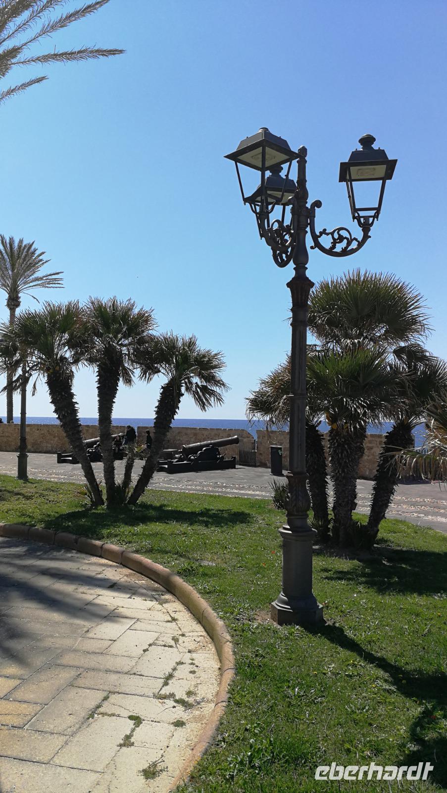 Heute brachen wir auf, die nahe gelegene Stadt Alghero zu erkunden. Die Stadt stellt bis heute eines der Zentren der katalanischen Minderheit auf Sardinien dar. Sie erlebte ihre Blütezeit unter der Herrschaft durch die Krone von Aragon und stellte einen wichtigen Anlaufpunkt für die Handelsbeziehungen zur iberischen Halbinsel dar. Die Katalanen nutzen Alghero als Stützpunkt, von wo aus sie ihre Kontrolle über die restliche Insel ausdehnen konnten. Entlang der Stadtmauern beeindrucken uns die Nachbildungen alter Belagerungswaffen die den Festungscharakter des Ortes herausstellen.