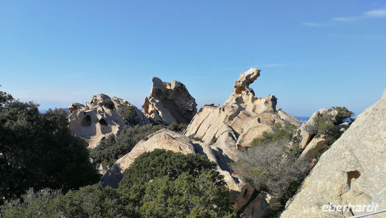 Wieder auf der Hauptinsel Sardinien angekommen fuhr die Gruppe zum nahe liegenden Bärenfelsen. Diese Felsformation auf dem Gipfel eines Berges wurde durch Gezeiten und Wasser-Strömungen aus dem Granitfelsen geformt und diente aufgrund der markanten Form, die an einen Bären erinnert, für Seefahrer aller Epochen als Orientierungspunkt zur Navigation zwischen den vielen kleinen Inseln. Wir genossen noch einmal den Ausblick auf die Nordküste, bevor es am folgenden Tag weiter ging in Richtung Westen.