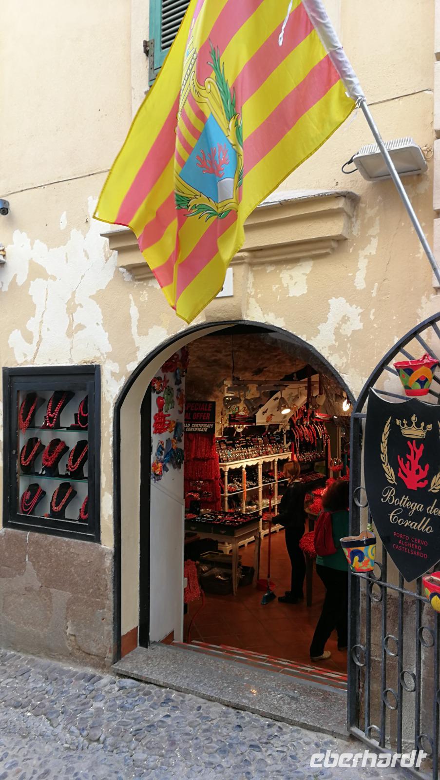 Beim Spazieren gehen durch die Gassen der Altstadt fällt außerdem sofort auf, dass viele Läden Schmuck, welcher aus roten Korallen hergestellt wird, anbieten. Die Korallenart ist eine der Besonderheiten von Alghero und ziert sogar das Stadtwappen. Knallrote Ausstellungstücke der Corallium Rubrum säumen unseren Weg, wohin wir uns auch bewegen und sorgen beim Rundgang für eine ganz eigene Optik.