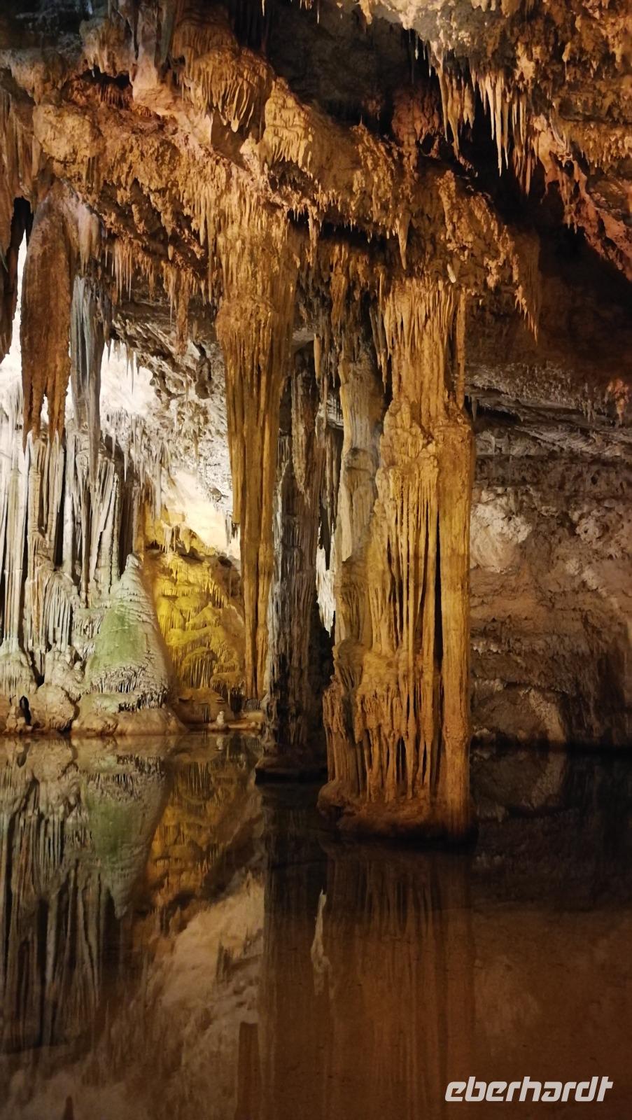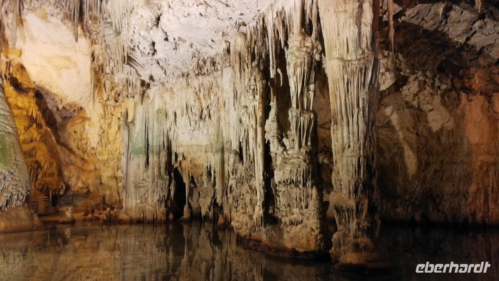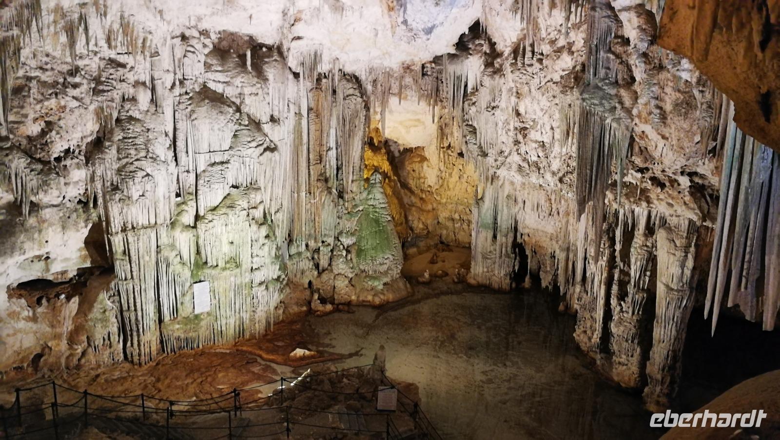 In der Kathedrale der Stadt erlangen wir erstmals einen Einblick in die Osterbräuche die hier nach katholisch-spanischem Vorbild durchgeführt werden. Da wir Sardinien über die Feiertage zu Ostern besuchten sollte uns dieses Thema im weiteren Verlauf der Reise immer wieder begegnen. Zum Mittag kosteten wir die typischen Focaccia Brote, die sich seit der Zeit der ligurischen Herrschaft über die Insel in ganz Sardinien etabliert hat. Die leckeren Köstlichkeiten stärkten uns für den nachmittäglichen Besuch der Neptunsgrotte. Diese Tropfstein-Höhle ist sowohl per Boot als auch über einen in den Fels gemeißelten stufenreichen Weg zu erreichen. Die Grotte selbst beeindruckte mit ihren gigantischen Ausmaßen und die für Tropfsteinhöhlen typischen Formen und Farben, die im Laufe der Jahrhunderte entstanden.