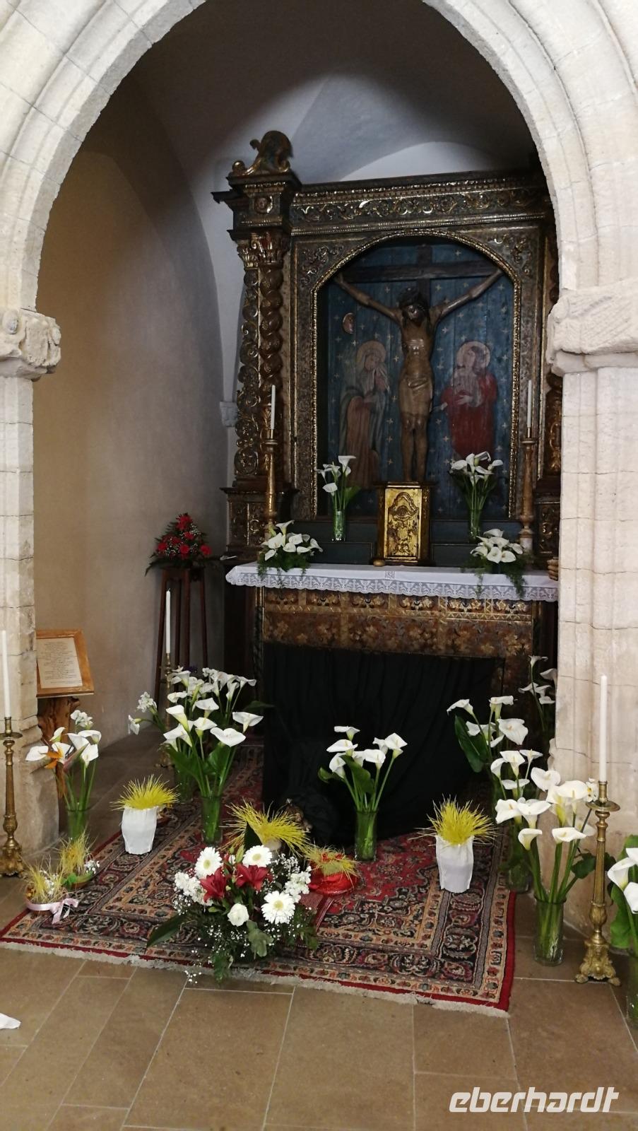 Doch zunächst führte unser Weg in die historische Altstadt Cagliaris, die bereits unter den Römern auf dem höchsten der Hügel gegründet wurde und im Laufe der Zeit verschiedensten Herrschern als Amtssitz diente. Die imposanten Festungsanlagen sowie die beeindruckende Kathedrale Cagliaris zeugen von der Bedeutung der Stadt sowohl als weltliches als auch geistliches Zentrum Sardiniens. In der Kathedrale begegneten wir erneut der verhüllten Jesus-Statue, die heute am Ostersonntag von Mönchen bewacht wurde, um am Abend im Rahmen der Oster-Prozessionen feierlich durch die Stadt getragen zu werden.