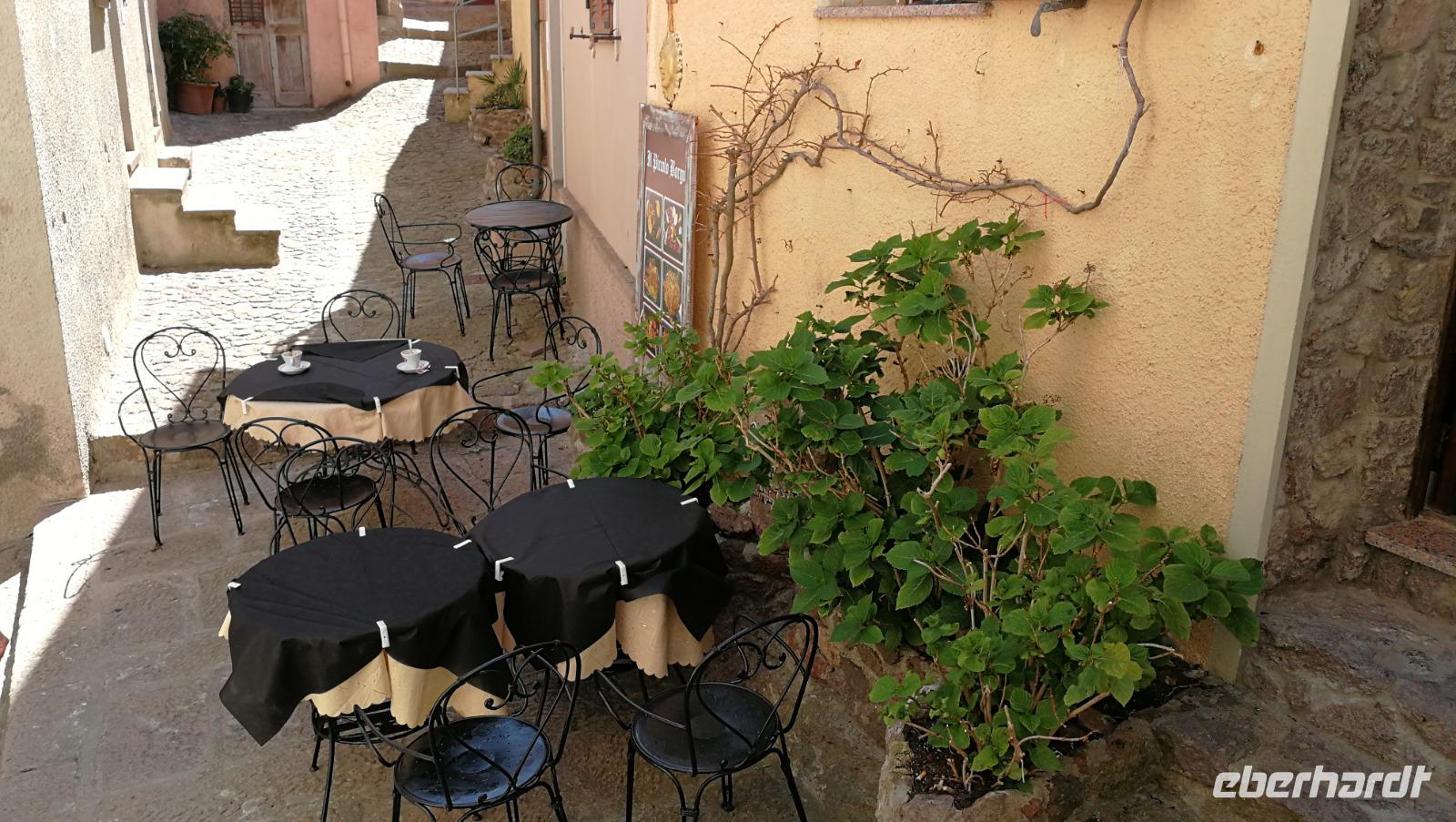 Wegen Überfällen über das Meer und weil an der Küste die Malaria weit verbreitet war zogen sich die Sarden im Laufe der Zeit vermehrt in das Hinterland zurück. So auch im Falle des Ortes San Pantaleo. Dieses malerisch gelegene Städtchen ist ein wunderbares Beispiel für das schlichte Leben der vorindustriellen Sarden in den, für die Region typischen, kleinen Granit-Häuschen - den Stazzus. Wir schlenderten durch die blumengeschmückten Gassen und über den österlich geschmückten Dorfplatz vor der rustikalen Kirche. Von dort aus genossen wir auch den Ausblick auf die Bergkämme hinter den Gebäuden, wo abenteuerliche Felsformationen der umliegenden Granitlandschaft ein beeindruckendes Panorama für San Pantaleo bilden.