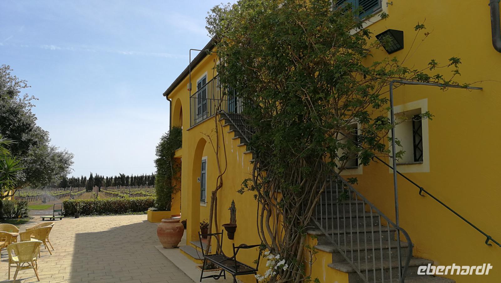 Nach einer kurzen Mittagspause mit Espresso verlassen wir die Küste wieder und machen uns auf zu einem malerisch gelegenen Weingut zur Weinverkostung. Die Besitzerin fuhr uns zunächst durch Ihre Anbauflächen, wo sie mit aufwändigen Methoden feinste Weinsorten sowie Olivenbäume bewirtschaftet, und daraus ihren eigenen Wein sowie ihr eigenes Olivenöl herstellt. Wir konnten uns selbst von der wunderbaren Qualität der Produkte selbst überzeugen, als wir bei der Verkostung das Zusammenspiel des Weines mit dem sardischen Käse genießen dürfen.