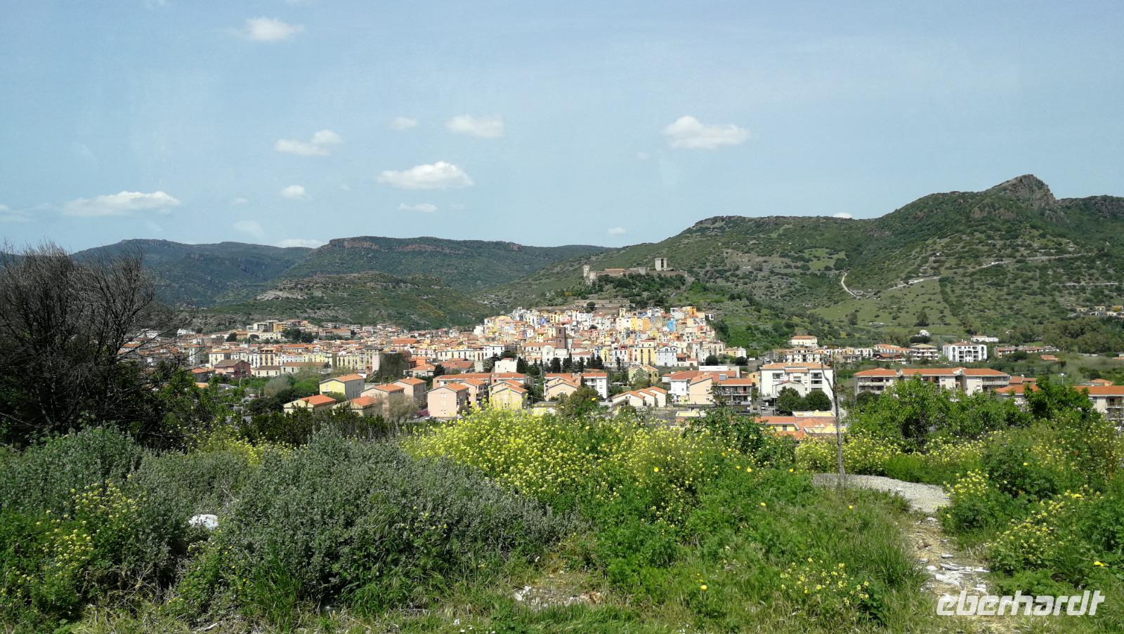 Am Morgen verlassen wir unser wundervolles Hotel an der Westküste und machen uns mitsamt den Koffern auf in Richtung der Inselhauptstadt Cagliari. Die Route führt uns zunächst entlang der eindrucksvollen Panoramastraße, die im gewundenen Serpentinen-Kurs dem Küstenverlauf folgt und von wo aus man eindrucksvolle Aussichten auf die vom Menschen unberührte Macchia Landschaft erlangt. Der erste Stop führt uns nach Bosa - einer kleinen Fischer-Gemeinde die etwas im Landesinneren an der Flussmündung des Temo liegt. Hier fallen vor allem die eng aneinander gebauten Häuser auf, die teilweise lediglich einige wenige Meter breit sind und deren räumliche Aufteilung die Bewohner zu fantasievollen Raumaufteilungen verleitet. Bunt geschmückte Blumenkästen zieren die farbenfrohen Fassaden und beim schlendern durch die Gassen genießen wir die österliche Ruhe.