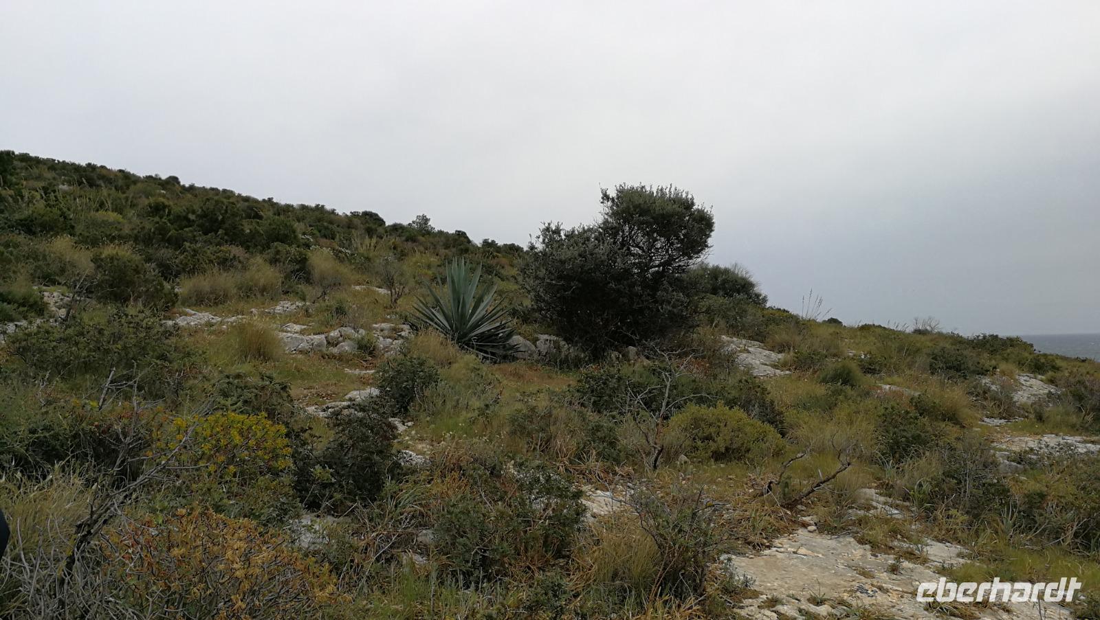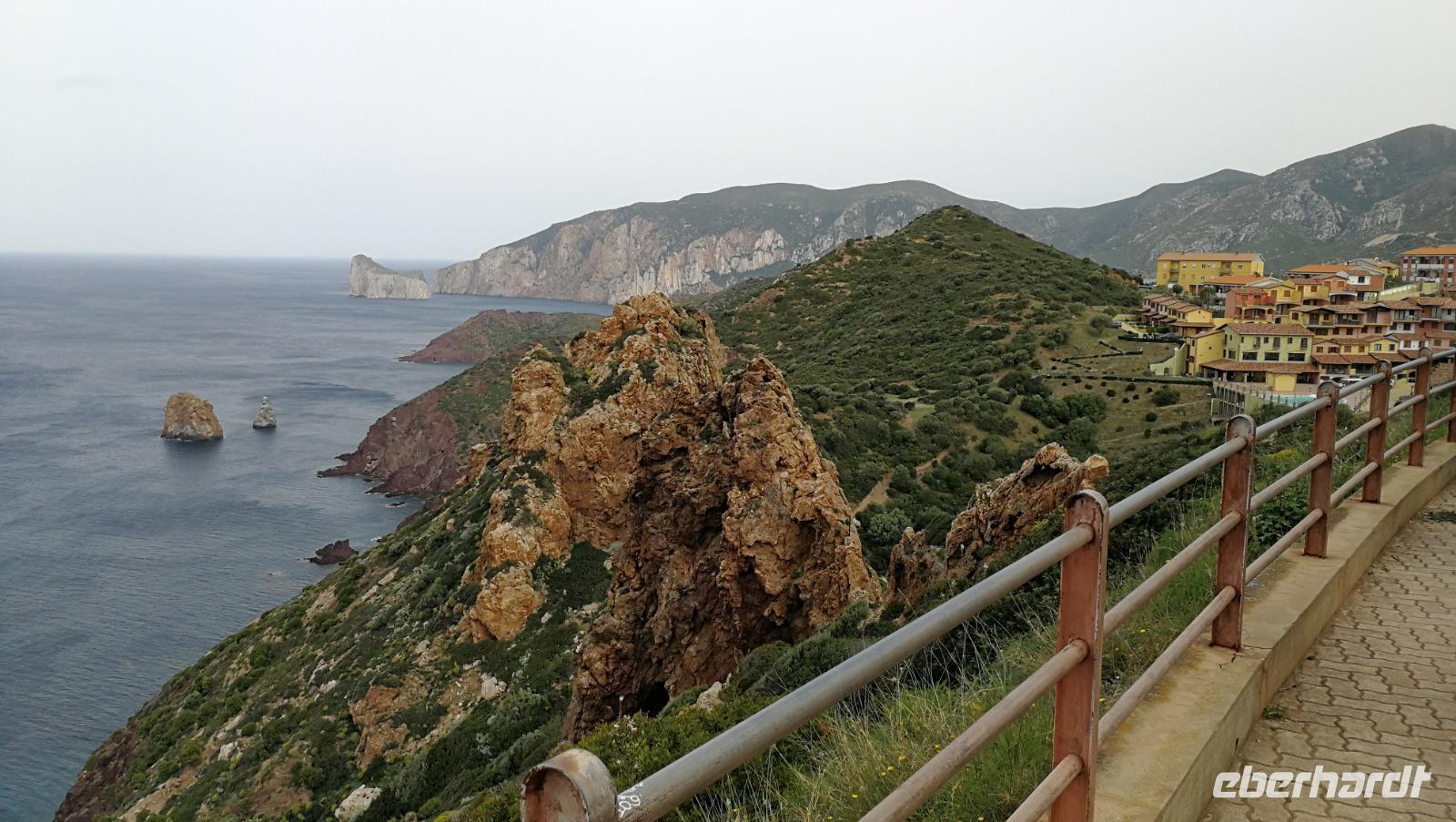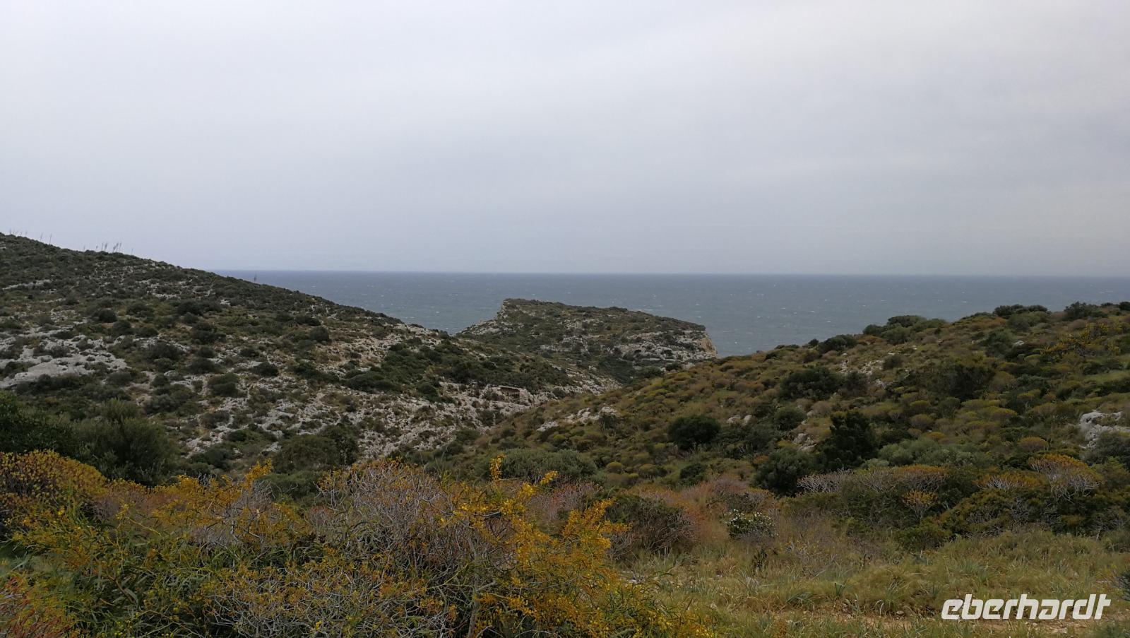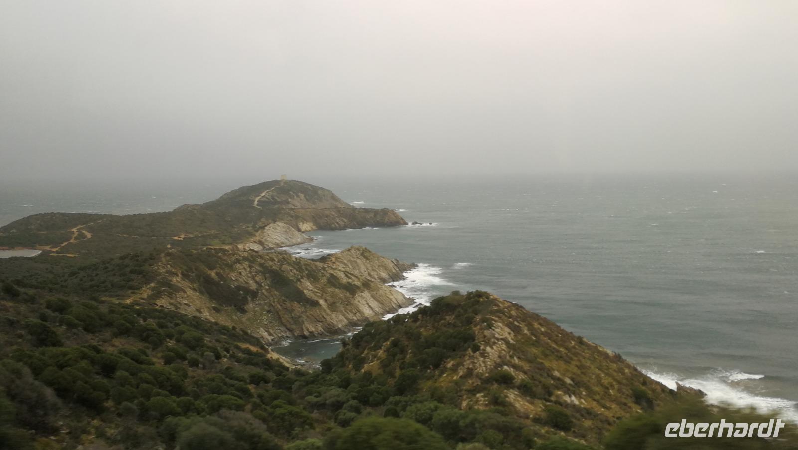 Wir fahren weiter über die Panorama-Strecke entlang der südlichen Küste zwischen Teulada und Chia. Dabei bietet sich uns ein atemberaubendes Naturschauspiel, denn neben der beeindruckenden Aussicht entlang der Buchten und Landzungen wusste auch das durch den Wind aufgewühlte Meer mit starker Brandung uns Respekt einzuflößen.