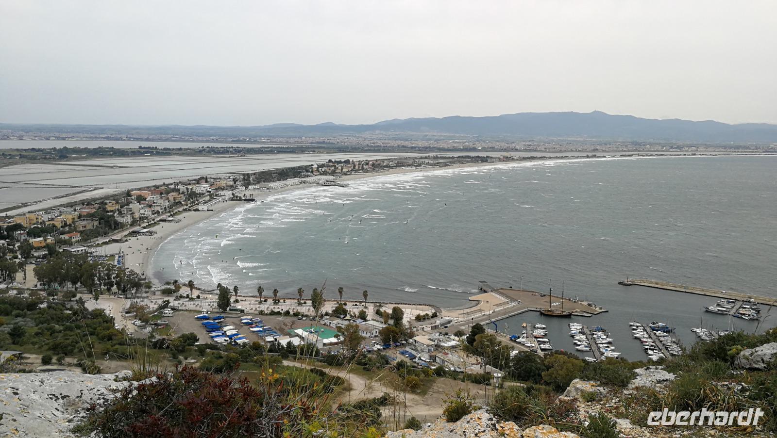 Als wir die Stadt erreichten fuhren wir zunächst auf den kleinsten der städtischen Hügel - Bonaria. Das hier errichtete gleichnamige Kloster ist der Haupt-Wallfahrtsort der gesamten Insel und namensgebend für die argentinische Hauptstadt Buenos Aires. Über den Aussichtspunkt des Monte Urpinu eröffnete sich der Gruppe das erste Mal der Ausblick auf die antike Altstadt Cagliaris sowie auf die weitläufige Salinen und Strandanlage die bei dem windigen Wetter des Tages zum Surfen einlud.