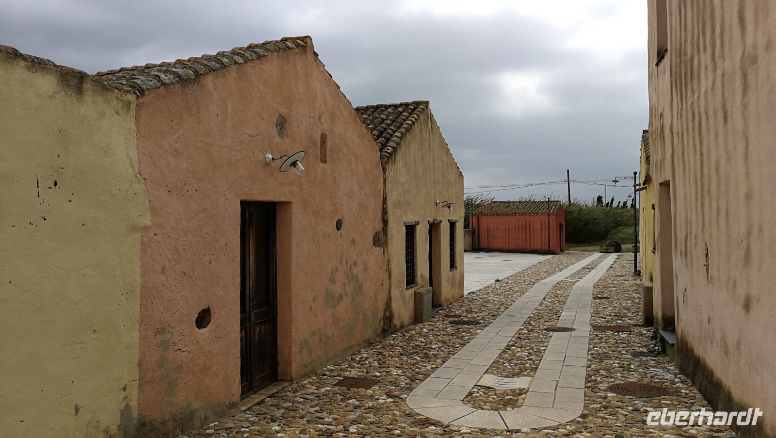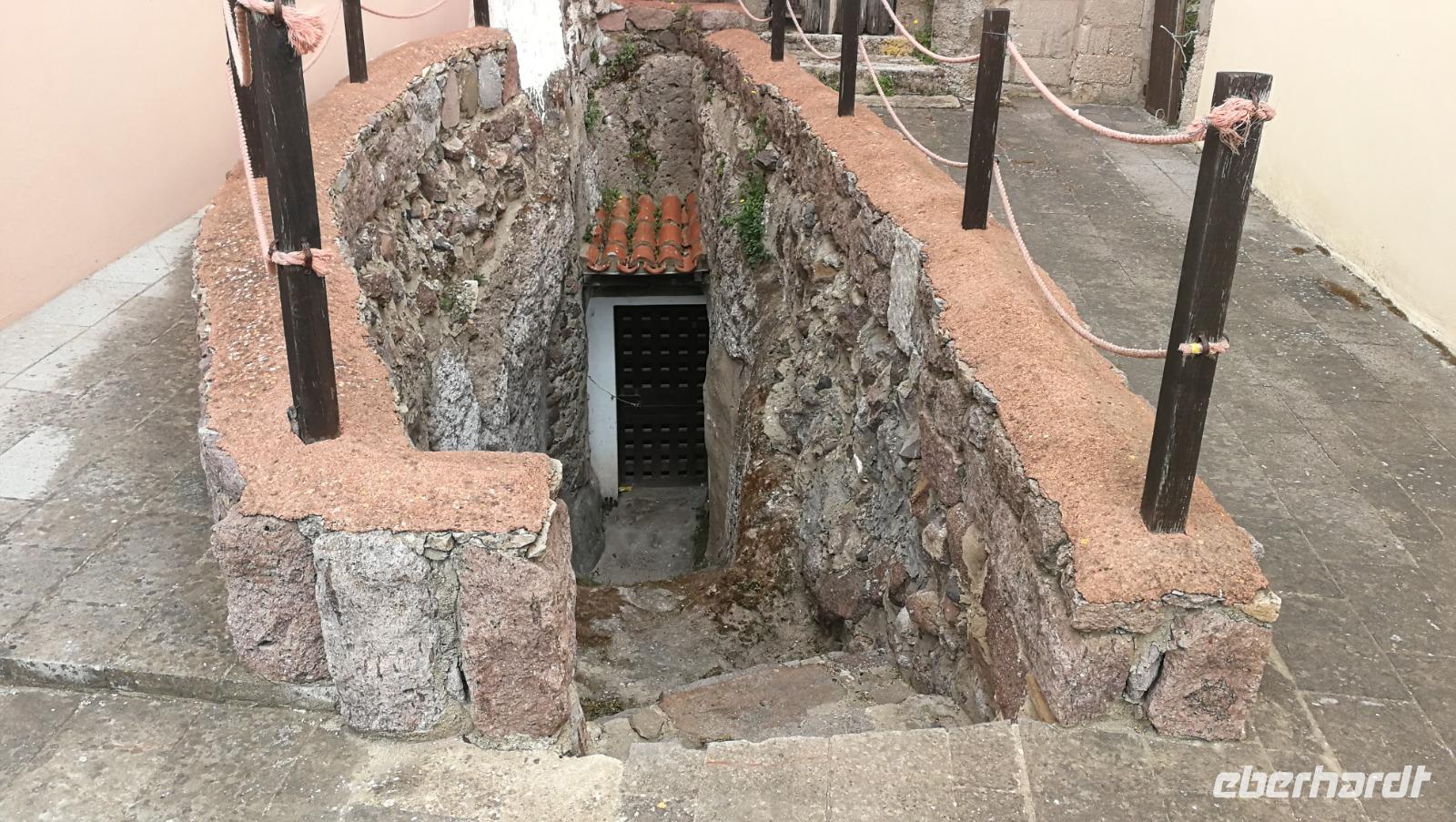 Erster Anlaufpunkt war der Pan di Zucchero, den man am Besten vom Panorama-Weg in Nebida aus erblicken konnte. Die Einwohner des beschaulichen Örtchens schilderten uns, dass sie aufgrund der Windböen der letzten Tage den Weg entlang der Steilküste zunächst noch von umgerissenen Bäumen befreien mussten, ehe wir hier heute Morgen ungehindert entlang schlendern konnten. Der Weg führte entlang der alten Minen-Strukturen, die hier in der Region dazu genutzt wurden Erze wie Blei und Zinn - später auch Kohle - abzubauen und mittlerweile verfallen sind und stumme Zeugen des geschäftigen Treibens von einst darstellen. Es geht weiter in Richtung Sant'Antioco - der nachweislich ältesten Besiedelung Sardiniens. Die Stadt auf der gleichnamigen, vorgelagerten Insel geht zurück auf eine phönizische Besiedelung, die mithilfe von Grabstätten nachgewiesen werden konnte. Diese Grabstätten bilden eine riesige Nekropole unter der heutigen Stadt und einzelne Grabkammern wurden bis in die 1980er Jahre für verschiedenste Zwecke genutzt - darunter auch als Behausung für die ärmere Bevölkerung. Während dem Spaziergang durch die Gemeinde kehrten wir auch ein bei einer Weberin, die das seltene Handwerk beherrscht, in einem aufwendigen Verfahren Muschelfasern zu Fäden zu verarbeiten um damit feinste Stick-Arbeiten anzufertigen.