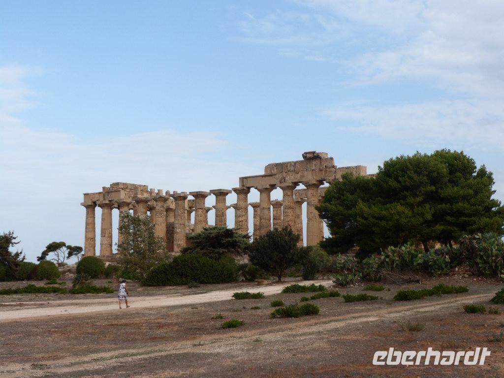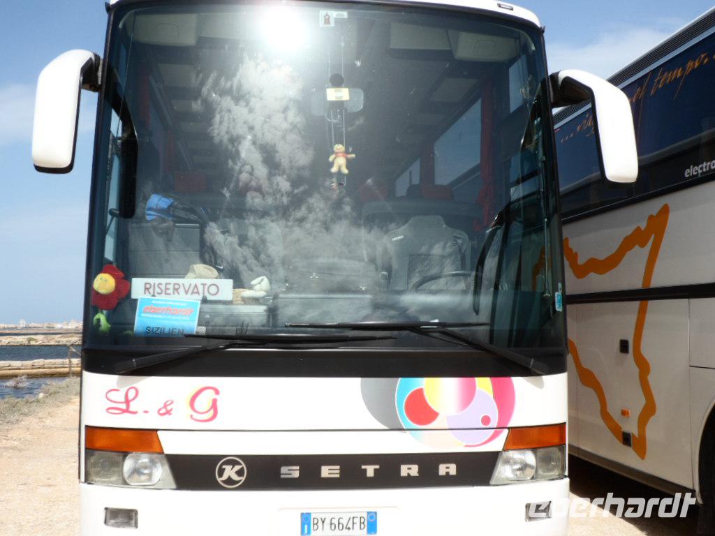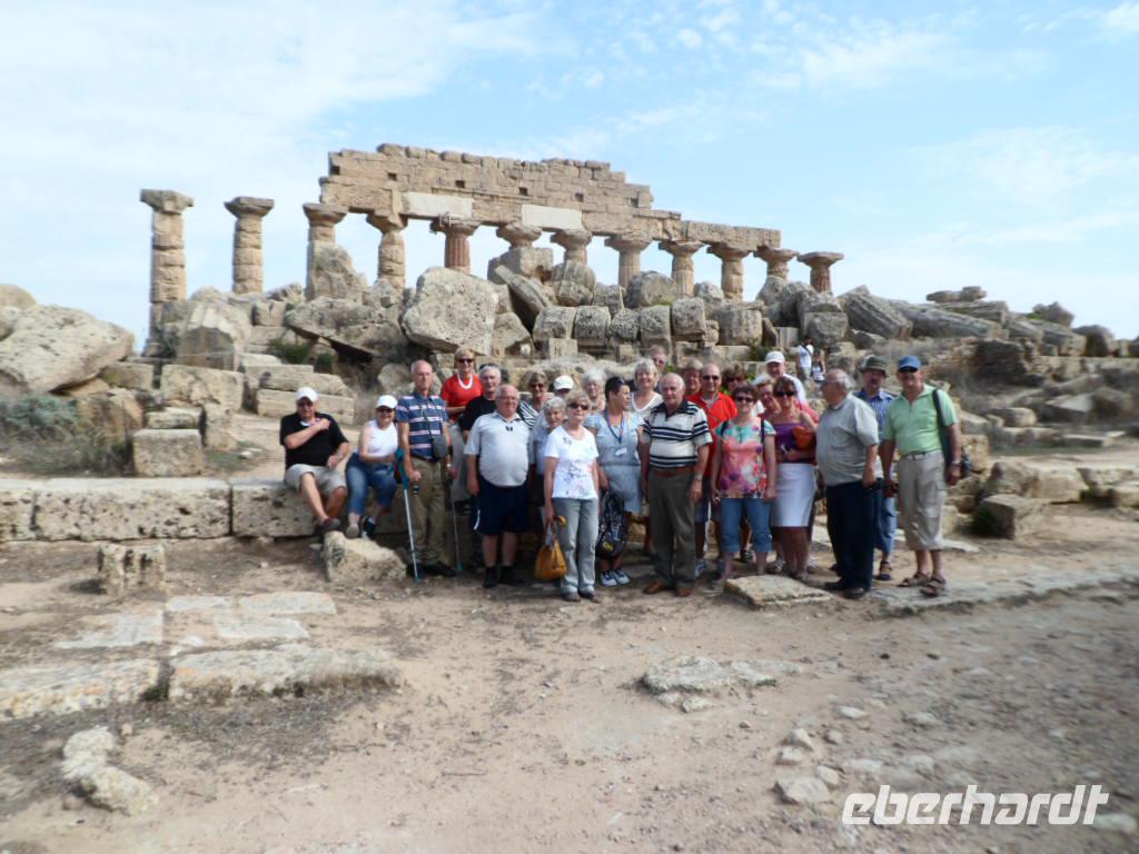 Abfahrt vom Hotel, 08.30 Uhr, mit Gepäck, nach Selinunte. Auf einem sanften Hügel liegen die Ruinen von Selinunt das als eines der bedeutendsten archeologischen Fundstätten von ganz Europa gilt. Mit Alberto unternehmen wir wieder einen Spaziergang durch das imposante Gebiet, schon aus kilometerweiter Entfernung sieht man die mächtigen Tempel die sich in zwei Zonen gliedern, die Tempel im Osten und die Akropolis. Durch die ausgegrabenen Straßen, die wir entlang gingen, kann man sich vorstellen wie zu dieser Zeit gelebt wurde und wie mächtig diese Stadt war. Auch hier bringt uns Alberto die Vergangenheit ein ganzes Stück näher, einfach sagenhaft, wie er das macht. Gegen Mittag erreichen wir Trapani mit den Salzgewinnungsanlagen und den Windmühlen, das Salinenmuseum besuchte keiner, es waren schon Tische für das Mittagessen vorbereitet und es gab wieder sizilianische Spezialitäten inkl. Wasser und Wein, sehr reichlich und gut. Weiterfahrt nach "Erice", eines der ältesten Stadte Siziliens. Besichtigung der Hauptkirche, Alberto erklärt wieder sehr ausführlich. Spaziergang durch die wunderschöne kleine, saubere Stadt auf dem 751m hohen Berg. Besuch einer kleinen Konditorei, Tante Maria ist weltbekannt durch die Herstellung ihres speziellem Mandel Gebäcks, einige Gäste kauften dieses leckere Marzipan . Alle waren wieder begeistert über die Vielfältigkeit der Umgebung . Weiterfahrt zum Hotel " Fiesta Athenee Palace" , Ankunft ca 19.00 Uhr. Immer noch Temperaturen von 36°C, Shirokko. Hier erwartete uns zum Abendessen wieder ein wunderbares Bufett.