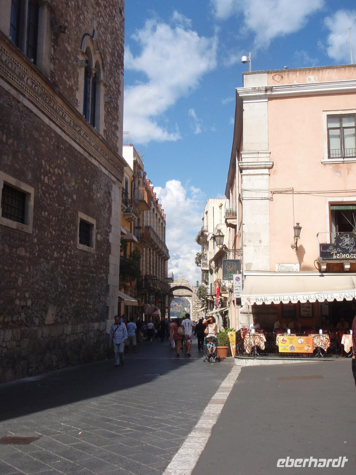 Für Touristen ist Taormina die typische sizilianische kleine Stadt, südeuropäisch und charmant. Dafür wird man als Touristen in Taormina nie allein sein, aber es gibt genug kleine Cafés und Eisstände, sodass alle einen Platz im Schatten finden können. Entlang der kleinen Strasse, wo man flanieren kann, befinden sich vielfältige Läden.