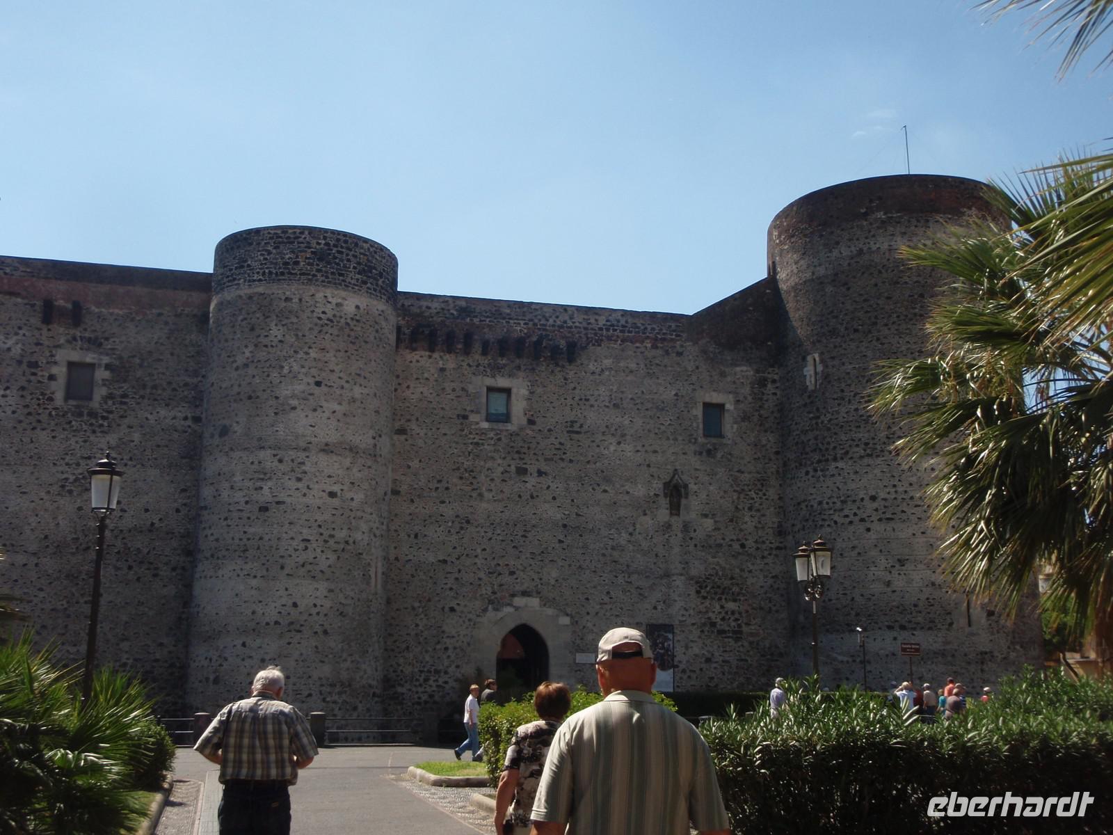 Wir verlassen den lauten Markt und gehen, durch enge Gasse, zum Castello Ursino, welches im 13. Jahrhundret von Kaiser Friedrich II gebaut wurde. Wir laufen zurück zum Piazza Duomo, vorbei an der Kirche des San Francesco e l'Immacolata und machen dort eine Mittagspause, bevor wir wieder in den Bus einsteigen und nach Syrakus fahren.