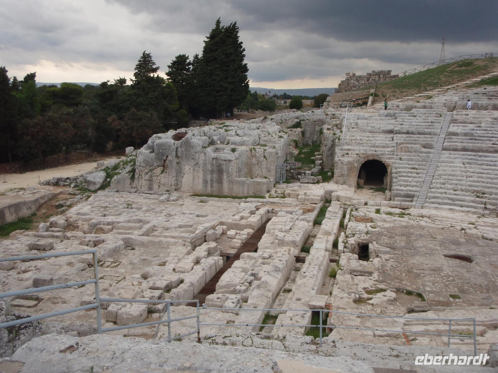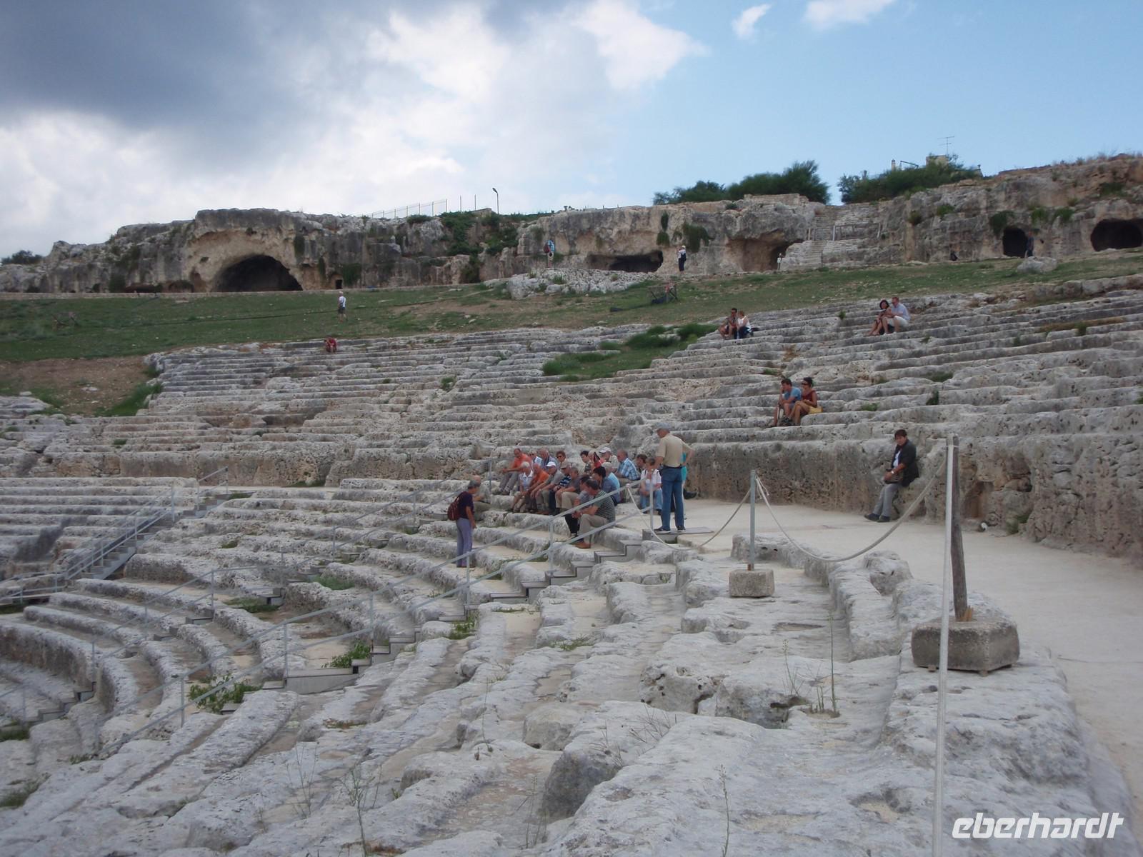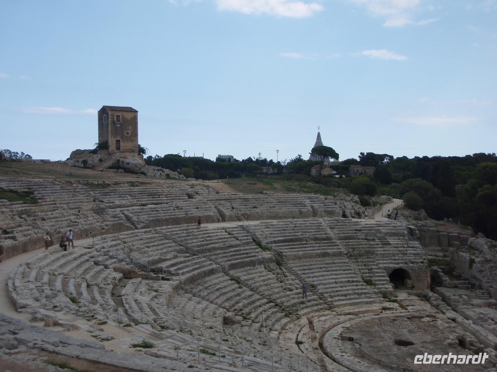 Syrakus war sehr lange in der Antike die mächtigste und größte Stadt Siziliens, und die Anlage ist 2005 zum Weltkulturerbe erklärt worden. Die Ausgrabungstätte ist natürlich sehr beeindruckend, aber ich war wirklich fasziniert vom Ohr von Dyonisos: eine künstliche Höhle, welche in den Felsen gehauen wurde, um Baumaterial für die Stadt zu bekommen. Die Höhle, die 20 m hoch, 64 m lang und bis 11 m breit ist, wurde auch als Gefängnis genutzt. Danach besuchen wir Ortygia und dort besonders den Dom von Syrakus, der als griechischer Tempel, als Kirche in der byzantinischen Zeit und als Moschee bei den Arabern genutzt wurde. Heute noch können wir dorische Säulen im Dom beobachten. Der Dom ist sehr interessant, da er die verschiedenen Epochen der Stadt aufweist.