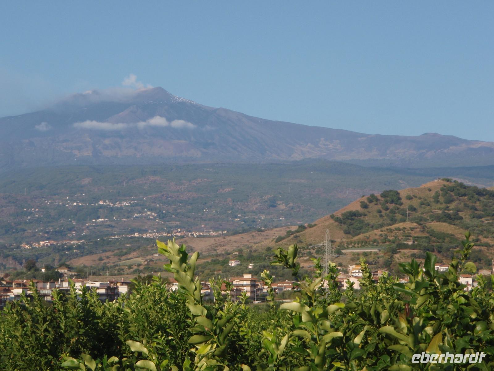 Ohne Verspätung, aber mit allen unseren Koffern kommen wir gegen Mittag gut in Catana an. Gertrud willkommt uns und führt uns zum Bus. Wir können schon die sizilianische Hitze genießen