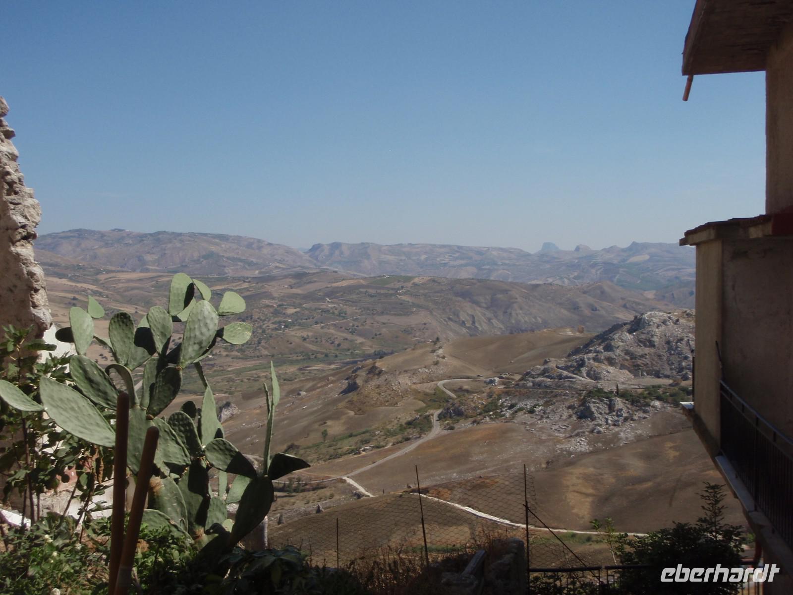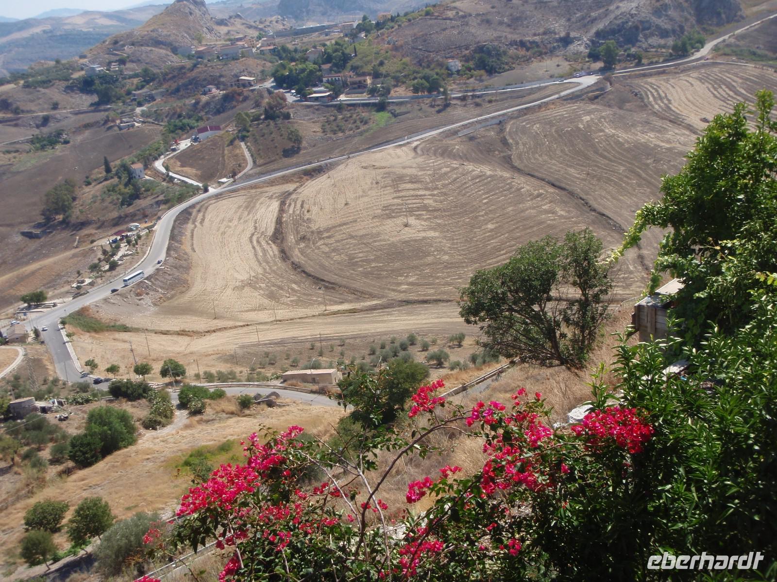 Wir besuchen in Collesano die Kirche aus dem 17. Jahrhundert und bummeln durch die Strassen der Stadt, bevor wir weiterfahren, Richtung Castelbuono. Wir halten kurz in der Nähe von Isnello, um die Landschaften des Madonie-Gebirge zu fotografieren. Unterwegs zeigt uns Rosario, der Busfahrer, wo er wohnt : ein Haus in der Landschaft, wo man seine Tür nicht zuschließen braucht.