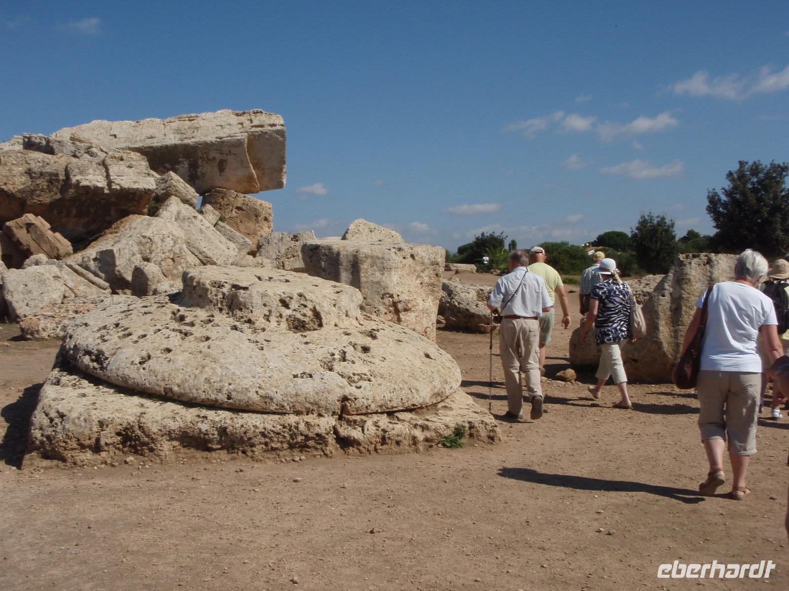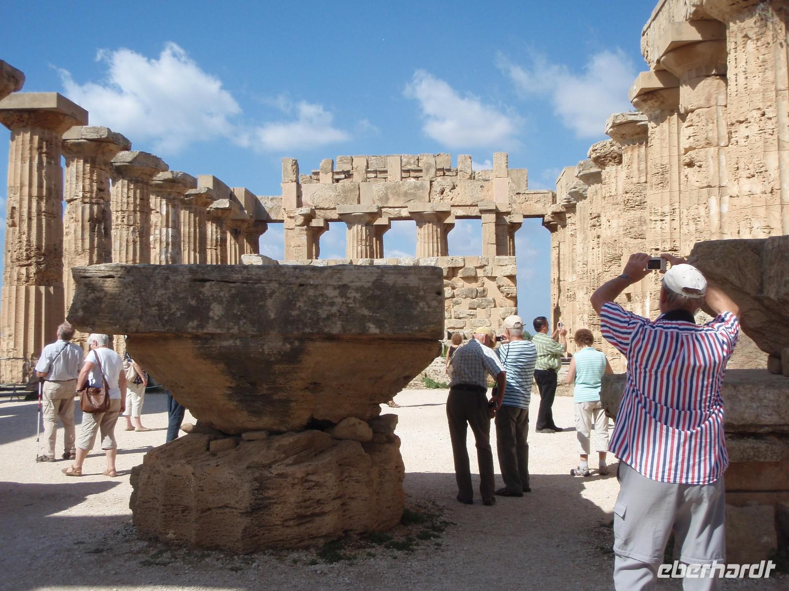 Selinunt war eine reiche griechische Stadt dank ihrer fruchtbaren Böden und wir können heute noch ihre Pracht beobachten. Viele Gebäude sind in der Vergangenheit von Erdbeben zerstört worden und die Anlage wird immernoch sehr aktiv studiert und durchsucht. Die Ausgrabungsstätte teilt sich in zwei verschiede Anlagen : die Akropolis, wo es vier Tempel zu besuchen gibt, und der Osthügel, wo sich Reste von 12 Tempeln und Siedlungen befinden. Wir laufen durch die zwei Anlagen und nehmen kurz den Bus zwischendurch.