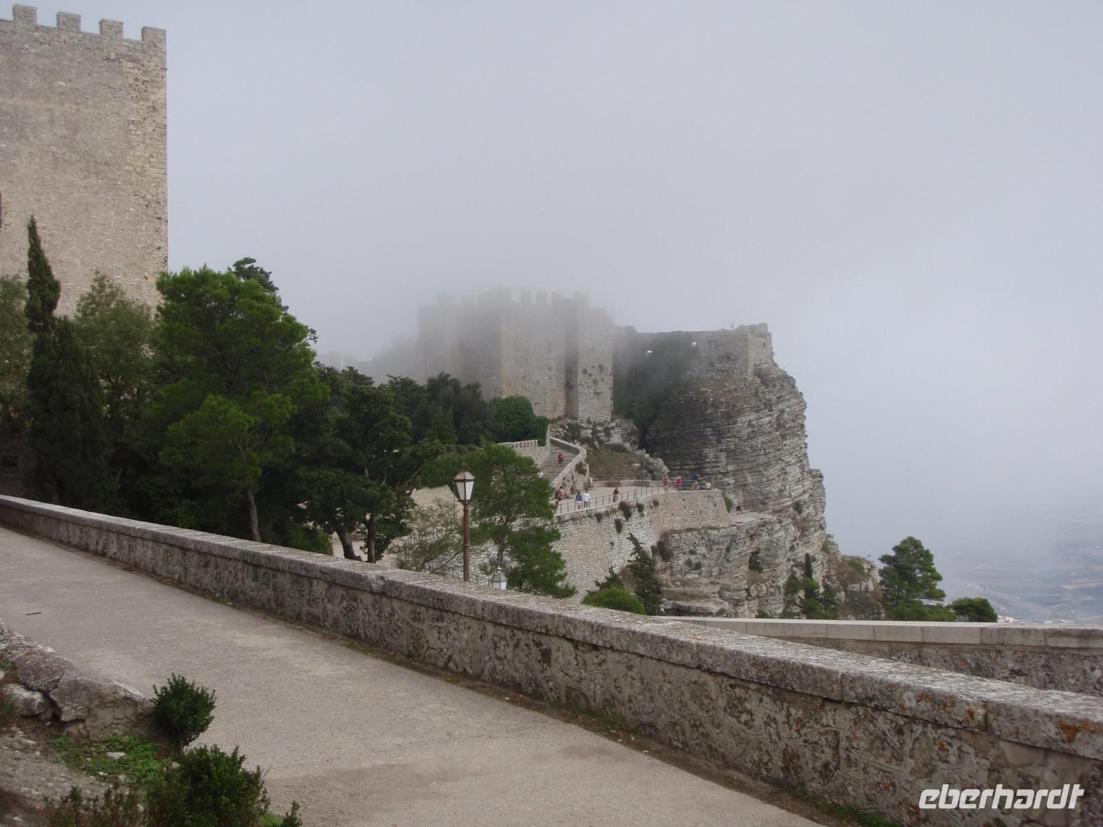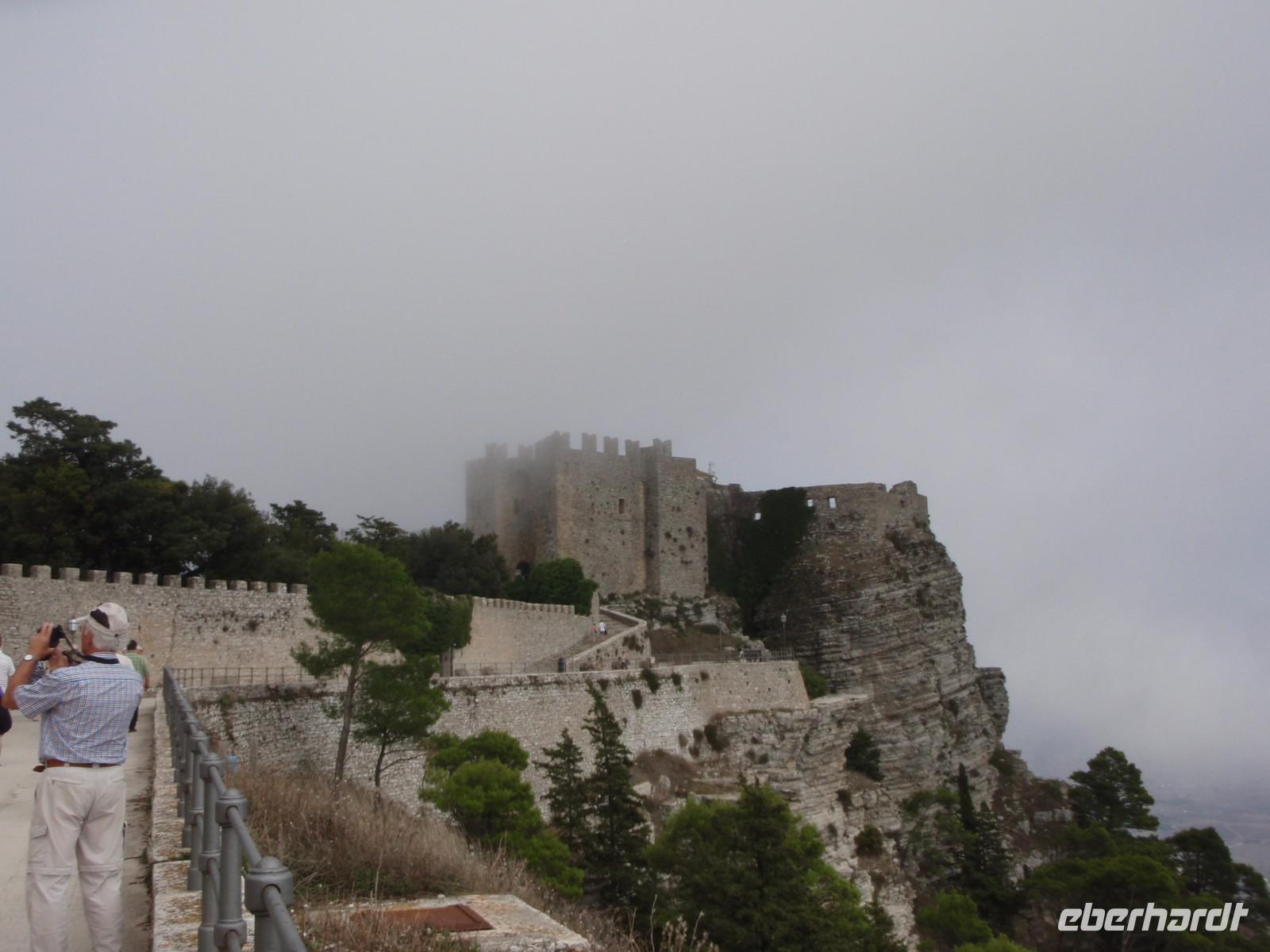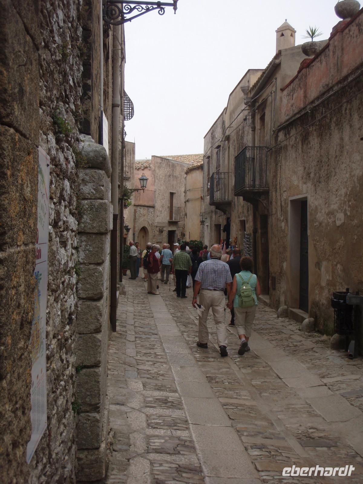 Erice ist ein Berg, aber auch der Name des Ortes, der sich auf dem Berg befindet. Der Ort war schon in der Antike besiedelt, aber hat jetzt ein mittelalterliches Flair. Das Dorf war im 12. Jahrhundert von den Normannen besetzt. Die Normannen haben das Kastell und das Tor gebaut und das Dorf hat sich verbreitet, da die kleine Stadt geblüht hat. Wir laufen vom Parkplatz zur Hauptkirche und ihrem Glockenturm. Die Kirche oder „Chiesa Madre" ist ein Beispiel des Chiaramontestil, ein gotischer Baustil typisch des 14. Jahrhunderts in Sizilien. Wir gehen dann auf das Kastell zu, durch enge Gassen und genießen den Blick auf das Tal. Danach laufen wir individuell zurück zum Bus, um zum Hotel zu fahren.