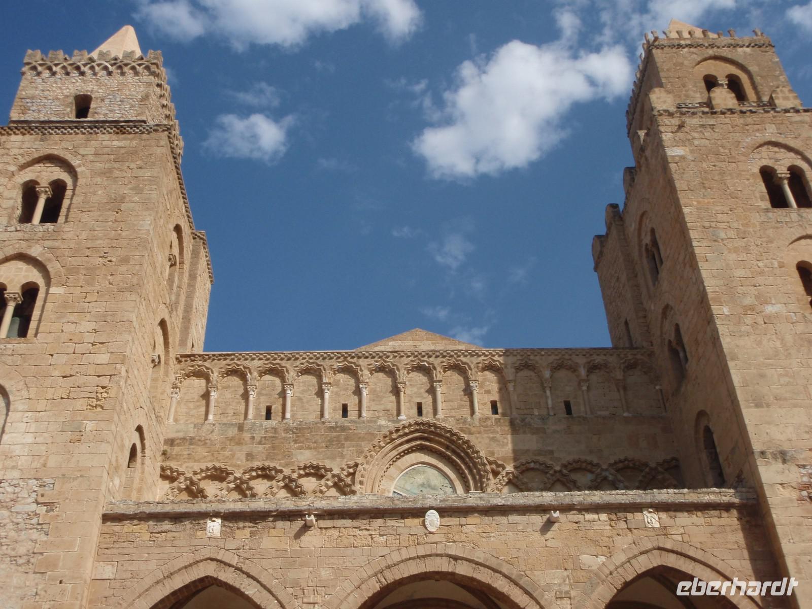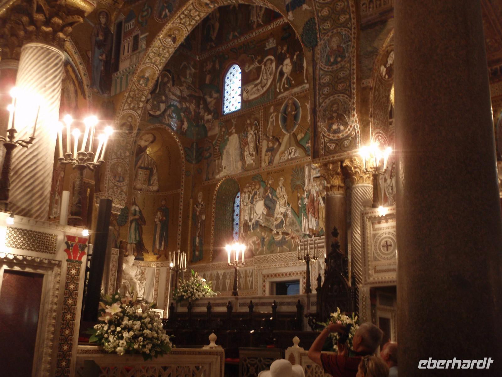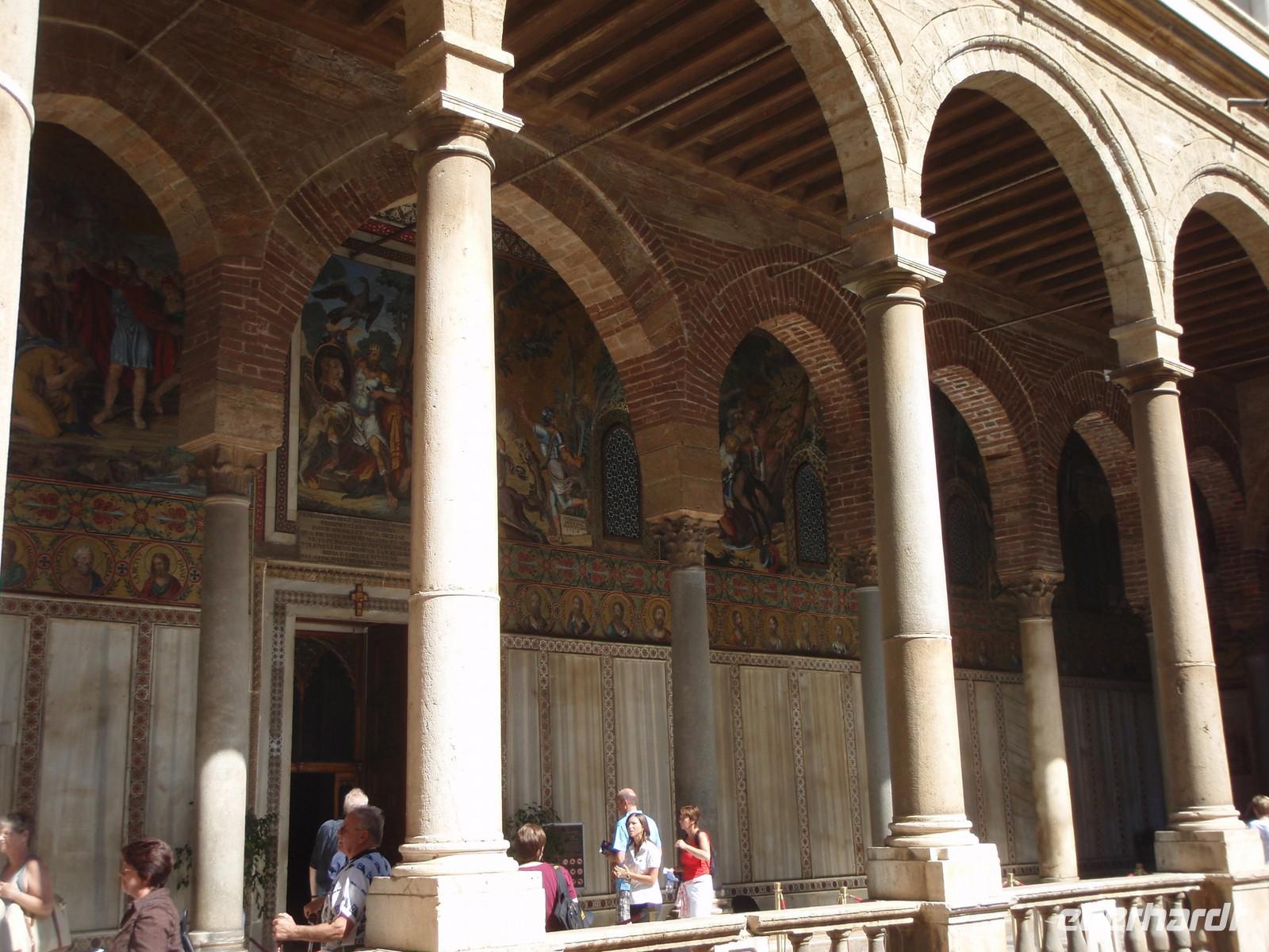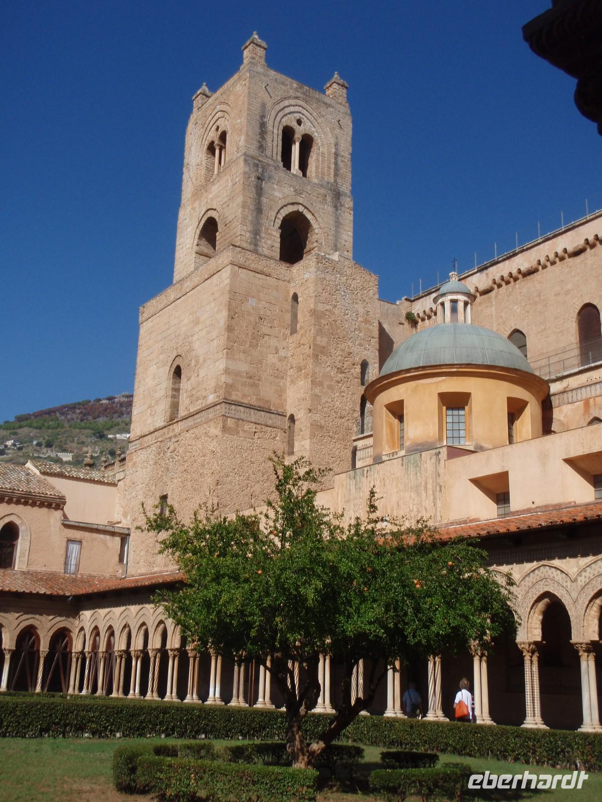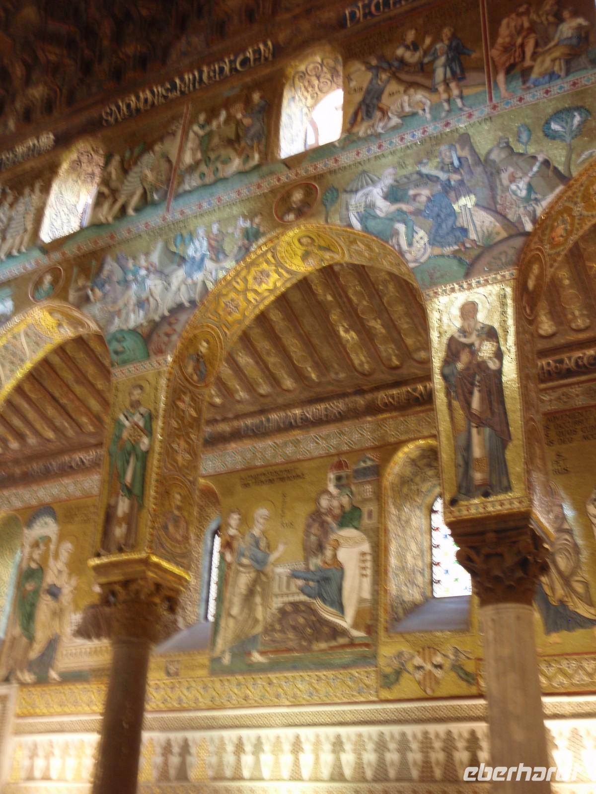 Die Kathedrale von Monreal ist wirklich ein Kunstwerk. Der Baustil fasst die drei Kulturen, die in der Geschichte Sizilens wichtige Einflüsse gelassen haben : normannische, bizantinische und arabische. Der untere Teil der Wände in der Kathedrale sowie der Fußboden sind mit Marmor verkleidet, nach der islamischen Tradition. Der obere Teil der Kathedrale besteht komplett aus Mosaik, die Flächen bedeckt von Mosaiken ist ungefähr mit 6.340 m² bemessen. Die Mosaike zeigen Szenen von Genesis, Buch des Alten Testaments, aber auch die Schöpfungsgeschichte, die Vertreibung aus dem Paradies sowie Teile vom Leben Noahs, Abraham, Isaak und Jakob. Die Kathedrale hat mir sehr gut gefallen. Ich fand das Kunstwerk sehr beeindruckend und ihre Architektur sehr imposant. Danach haben wir auch das Kloster besucht, welches sehr ruhig und auch schön ist.