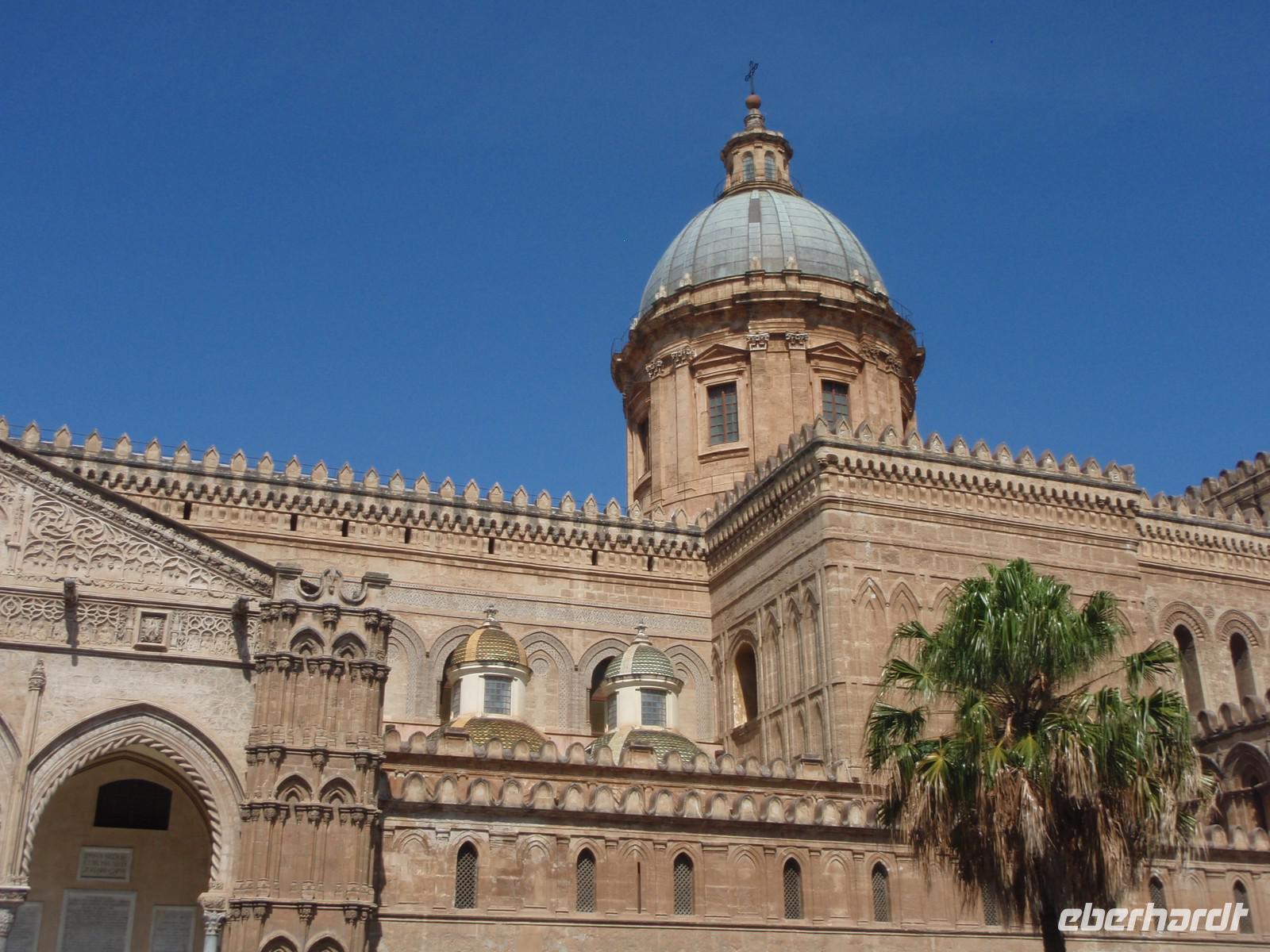 Anschließend fahren wir nach Palermo und besuchen erst die Kathedrale Mario Santissima Assunta, die im 12. Jahrhundert im normannisch-arabischen Stil gebaut war. Im 6. Jahrhundert war am Ort schon eine Kathedrale gewesen, welche nach der Eroberung der Stadt von den Arabern in eine Moschee umgewandelt wurde. In der Kathedrale befinden sich die Gräber der Stauferkaiser Heinrich VI., Friedrich II. und Königin Kontanze von Sizilien. Nach dem Besuch der Kathedrale unternehmen wir eine kleine Stadtrundfahrt bis zum Opernplatz, wo wir aussteigen und ein bisschen Freizeit genießen können, um Delikatessen zu probieren, noch einen kleinen Bummel zu machen oder einfach sich in ein Café setzen.