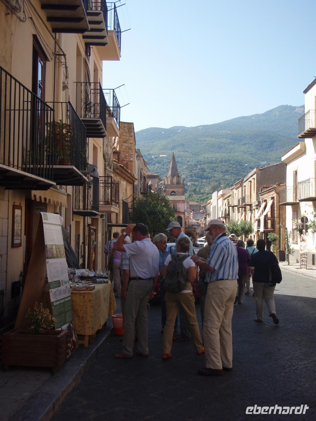 Wir erfahren heute Vormittag das Leben in einem typischen sizilianischen Dorf mit seinen Vorteilen, aber auch mit seinen Nachteilen. Camelita führt uns durch ihr Dorf und erzählt uns, wie das Leben in ihrem Dorf ist. Sie hat in Deutschland gelebt und wollte irgendwann zurück nach Sizilien. Sie ist zurück in ihr Dorf gekehrt und hat ein Café eröffnet. Leider hat es nicht geklappt, da die Dörfer in Sizilien sich langsam leeren. Camelita hat jetzt Schwierigkeiten das Geld für ihre Familie zusammen zu bekommen und hat sich entschieden, den Touristen ihr Dorf zu zeigen.