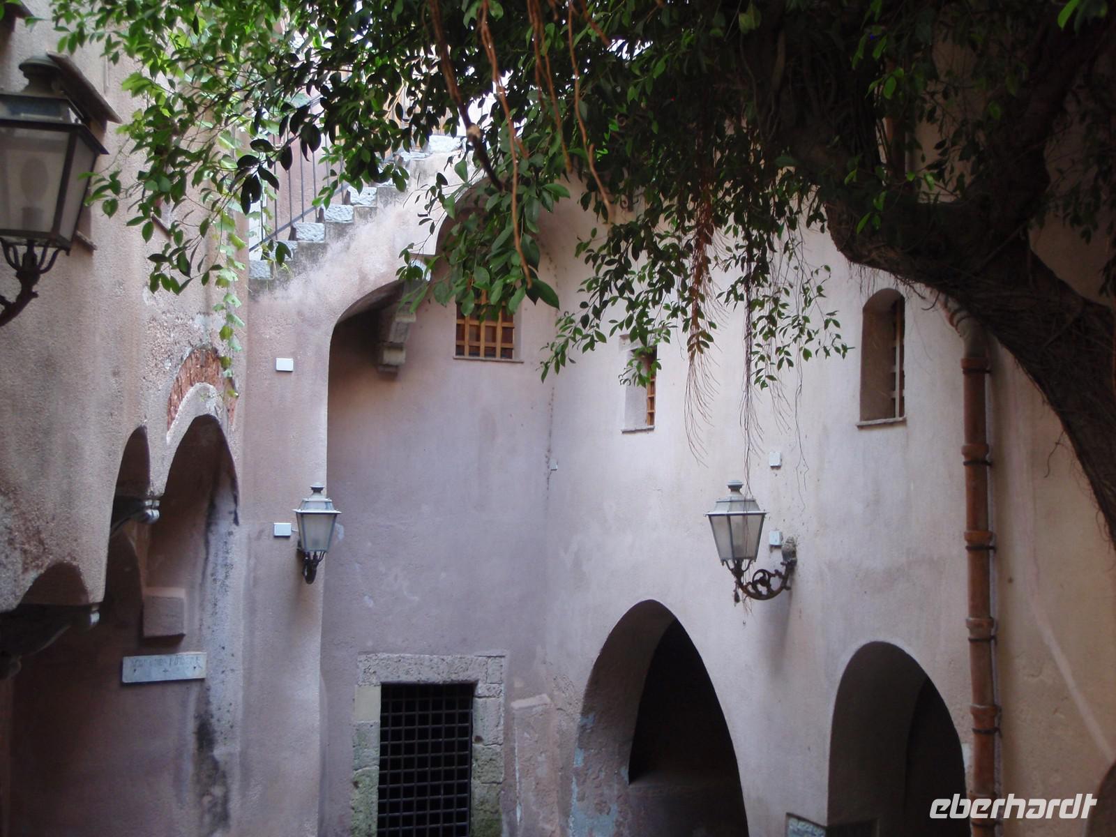 Nach vielen Serpentinen kommen wir in Castelbuono an. Castelbuono ist eine kleine Stadt mit 10.000 Einwohnern. Wir laufen in der Nähe vos Kastells, wo wir die letzten Spezialitäten Siziliens kosten dürfen. Manna, ein Produkt der Esche ist ein exklusives Produkt von Castelbuono. Nach der Verkostung haben wir ein bisschen Zeit, um Kleinigkeiten zu kaufen, bevor wir zum Kastell laufen. Das Kastell wurde ab 1316 gebaut,wurde jedoch mehrmals umgebaut. Diejenigen von uns, die das Kastell besuchen möchten, gehen hinein, während die anderen noch shoppen gehen oder im Café sitzen. Anschließend fahren wir nach Cefalù.
