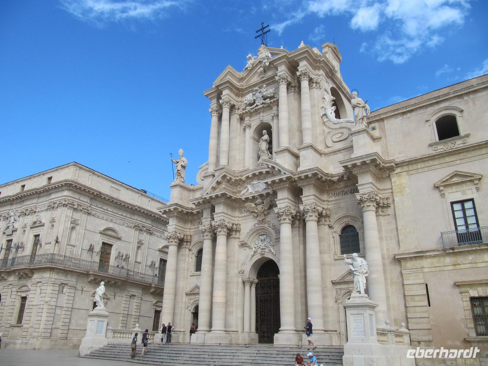 Unser heutiger Ausflug bringt uns zuerst nach Catania. Alberto zeigt uns den Dom mit dem Grabmal des berühmten Opernkomponisten Vincenzo Bellini. Wir bestaunen auf dem Fischmarkt das regeTreiben, bestaunen Fische und anderes Meeresgetier, Gemüse und Obst. Dann spazieren wir durch die Altstadt mit vielen Kirchen zum Castello Ursino. Nach einer Mittagspause führt uns die Fahrt in den Süden, nach Syrakus! Dort erwartet uns Carolina und wir bummeln durch die Altstadt. Wir besichtigen den Apollotempel und natürlich den interessanten Dom. Der Platz ist einer der schönsten von Sizilien, von barocken Palazzi umgeben. An der Süßwasserquelle Aretusa wächst der seltene Papyrus. Carolina zeigt uns das größte Theater der griechischen Welt. Wir besichtigen auch den Steinbruch und das Ohr des Dionysios! Der Bus bringt uns zurück in unser Hotel. Es heißt Koffer packen!