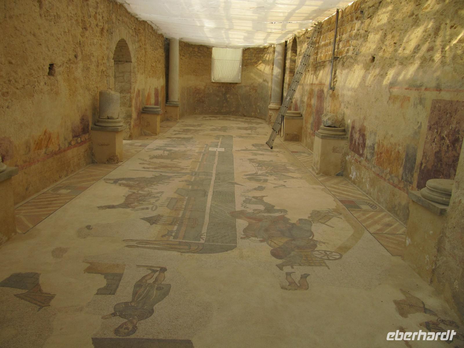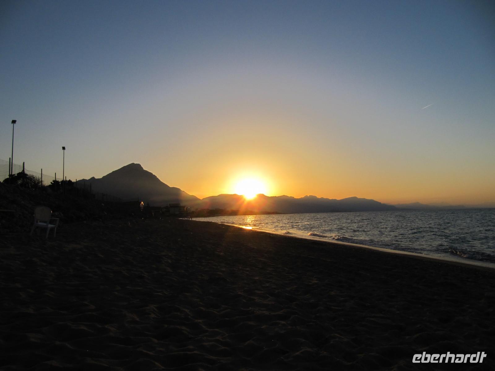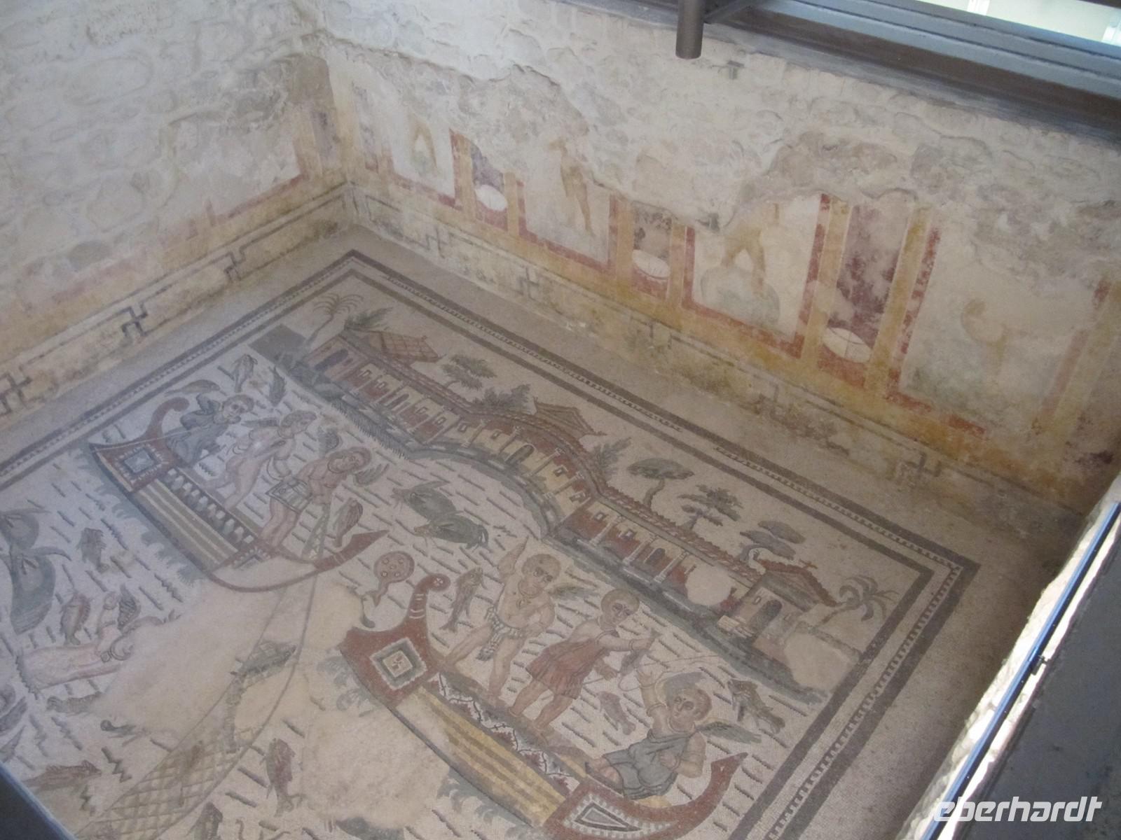 Heute fährt uns unser Bus auf den Ätna, bis auf eine Höhe von 1910 m.Die Seilbahn bringt uns zur Bergstation auf 2500 m und weiter geht es mit einem Geländefahrzeug. Keine Wolke am Himmel. Ein herrlicher Blick zu den drei Ätnagipfeln und über einen Großteil der Insel begeistert uns! Unser Busteam hat für uns ein Picknick mit Ätnablick organisert, wir langen kräftig zu und haben unseren Spaß!! Unser nächstes Ziel ist die Villa Romana Casale mit ihren weltbekannten Mosaiken. Wir staunen über die fantastischen Werke, die Alberto uns genau erläutert. Unser heutiges Hotel Baia di Ulisse befindet sich in San Leone, einem Vorort von Agrigent, über einer kleinen Steilküste direkt am Meer. Leider ist es schon zu spät, um im Meer zu baden. Im Oktober wird es eben doch schon recht früh dunkel!