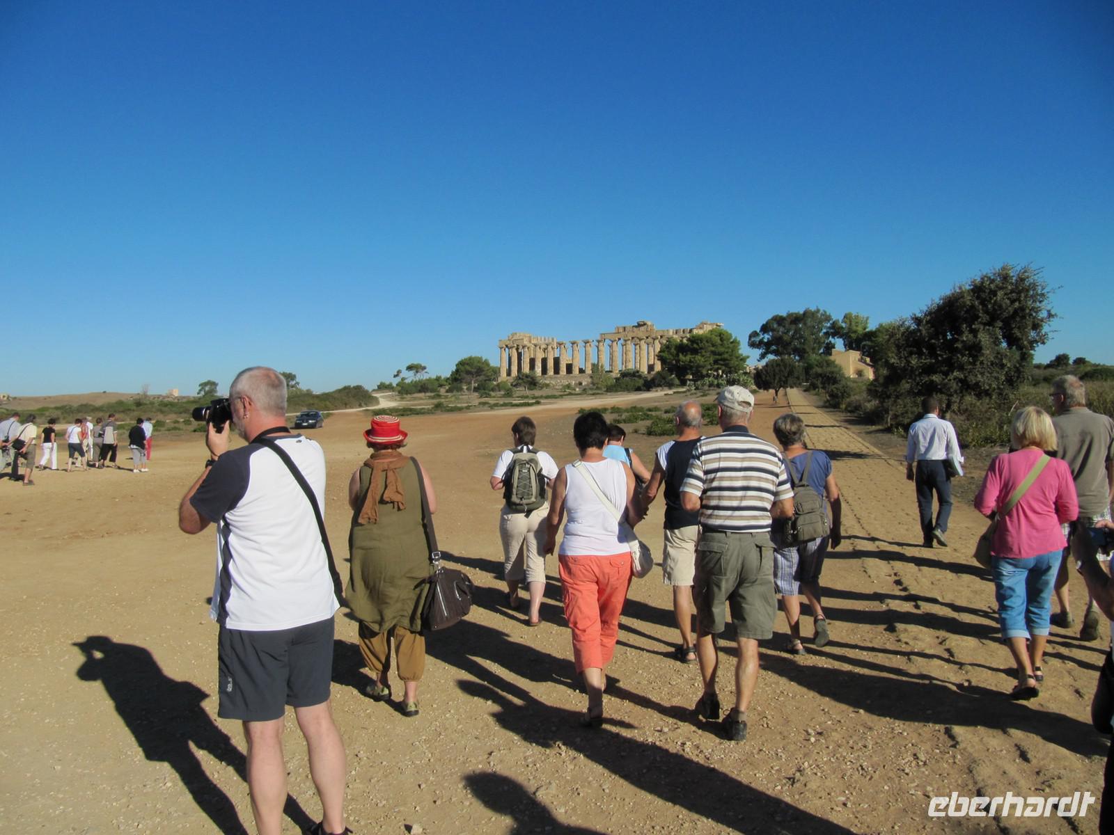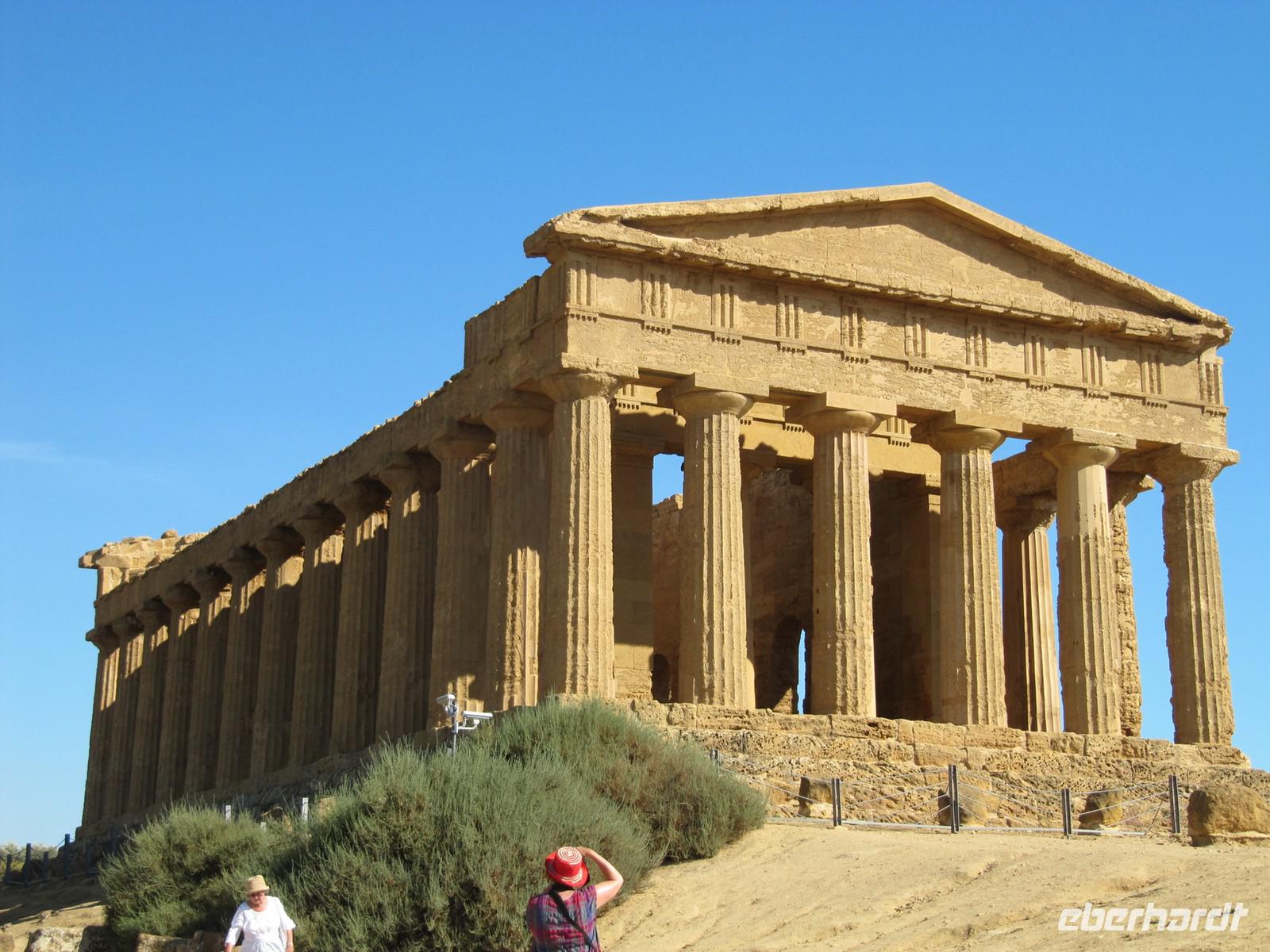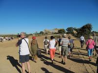 Am Vormittag fahren wir ins Innere der Insel nach Sant Angelo Muxaro. Wir probieren in einer Bäckerei frisch gebackenes Brot, kaufen einige Inselprodukte. Da unsere Gruppe so interessiert ist, zeigt uns unsere Stadtführerin sogar ihre Wohnung. Dann gibt es noch ein kleines Mittagsmenü. Wir fahren zurück nach Agrigent und Alberto führt uns mit vielen Erklärungen durch das berühmte Tal der Tempel. Beeindruckend! Fünf Tempel wurden hier im 5.Jh v.Chr. errichtet. Der Concordiatempel ist einer der besterhaltenen griechischen Tempel überhaupt! Übernachtet wird in Mazara del Vallo, im Hotel Mahara. Einige Gäste bummeln noch in die Stadt. Nur das Meer ist nicht zum Baden geeignet!