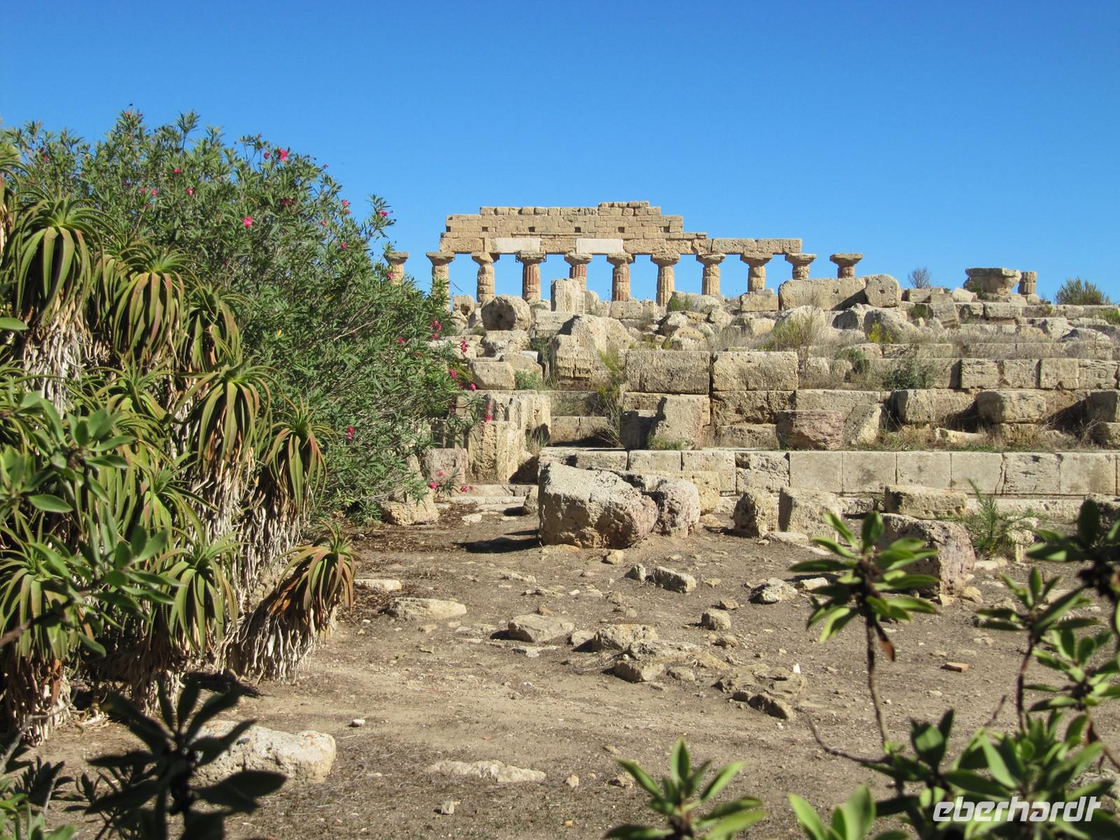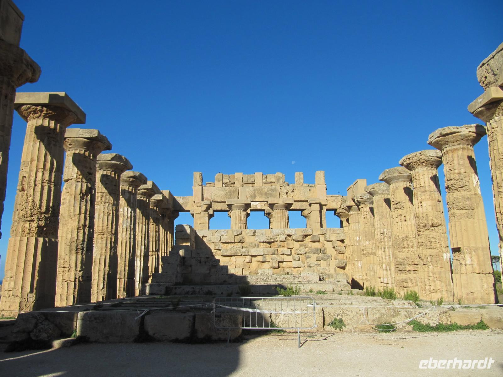 Heute führt uns das Programm nach Selinunte, Höhepunkt einer Sizilienreise. Es ist das größte Ausgrabungsgelände in Europa, idyllisch am Meer gelegen. Wir besichtigen den östlichen Tempelbezirk und die Akropolis. Danach gehts über Trapani zu den Salinen, wo wir im Restaurant "Trattoria del Sale" typisch sizilianische Gerichte speisen. Wir fahren hinauf nach Erice, das 751 m hoch über dem Meer liegt. Schon bei der Auffahrt können wir herrliche Blicke über die Nordküste der Insel werfen. Wir bummeln durch die alten Gassen der Stadt, wollen eigentlich das berühmte Mandelgebäck bei Maria probieren. Doch die Gäste haben keinen Appetit! Also weiter zum Aussichtspunkt am Castello de Venere. Dann fahren wir noch über zwei Stunden zu unserem Hotel Fiesta nach Campofelice, wo uns ein reichhaltiges Abendbuffet erwartet.