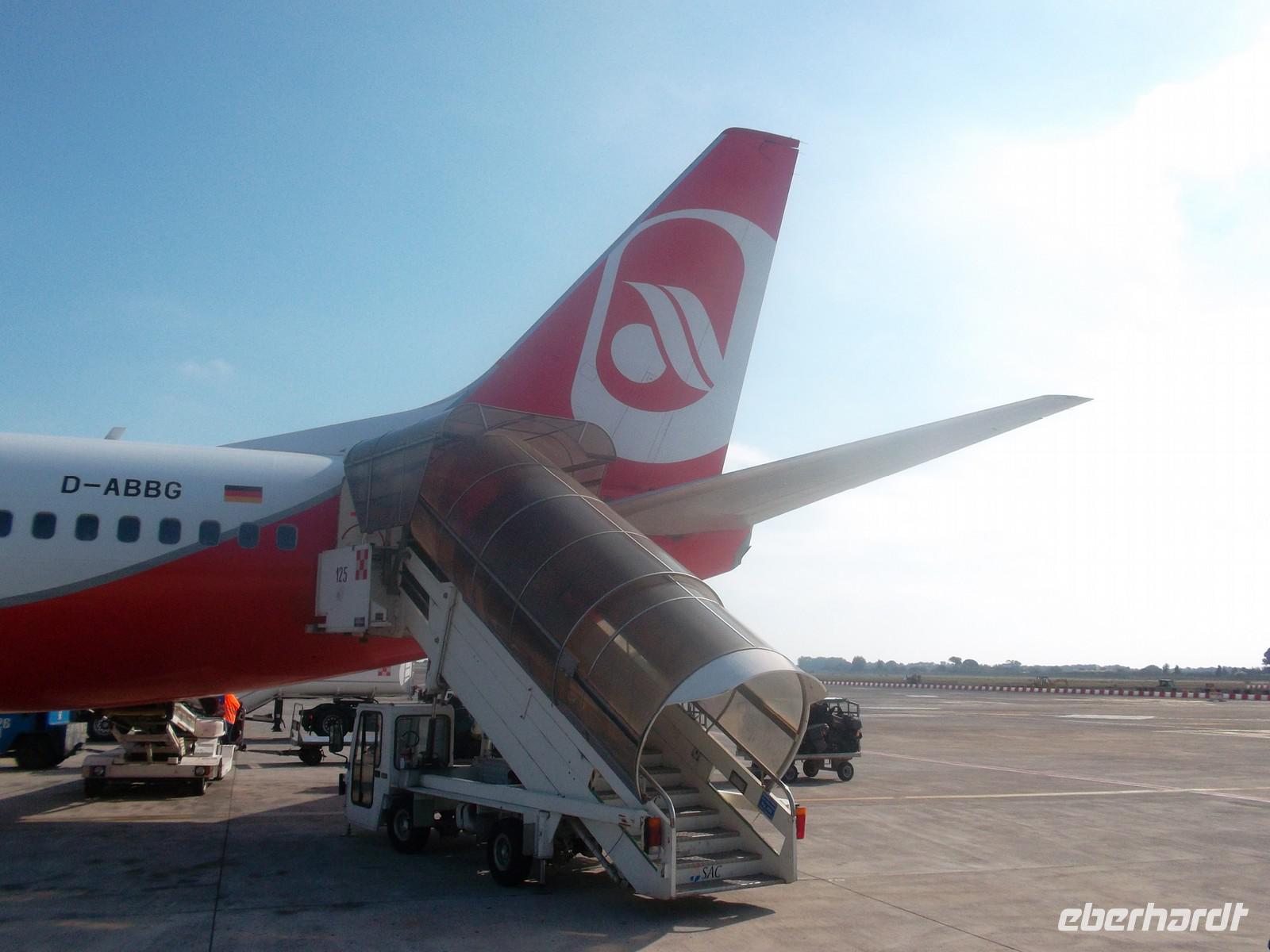 Die Reise begann wie immer mit pünktlicher Abfahrt und dem zuverlässigen Haustürtransfer von Eberhardt TRAVEL. Bald nach Ankunft aller Transferfahrzeuge am Flughafen Berlin-Tegel - Terminal C ist der Air Berlin, vorbehalten, Deutschlands zweitgrößter Fluggesellschaft - hatten wir die Vollzähligkeit - 36 Reisegäste - erreicht. Etwas früh waren wir alle aufgestanden, denn schon kurz nach acht Uhr sollte der Flug auf die süditalienische Ferieninsel starten. Etwa zwei Stunden vorab begann das Einchecken zum Air-Berlin-Flug, pünktlich war der Start und pünktlich landeten wir gegen 11.00 Uhr auf Sizilien!