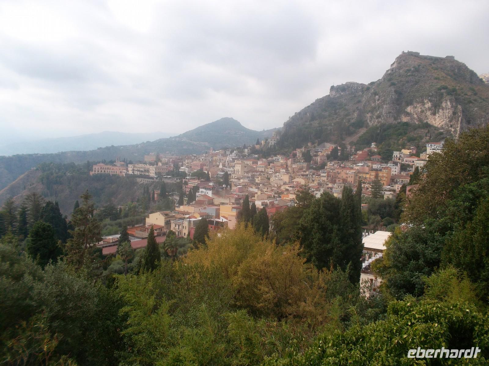 Bereits beim telefonischen Vorab-Geplauder - einem besonderen Service des Eberhardt-Reiseleiters - hatte ich mich mit den Gästen über das Wetter und das Interesse an einem möglichen Sonderausflug nach Syrakus unterhalten. Da alle teilnehmen wollten, konnten wir auch gleich unseren sonnigen Ankunftstag nutzen. Unter leichtem Umbau des ausgeschriebenen Programms holten wir zunächst einen von einem anderen Flughafen „zugeflogenen" Reisegast im Hotel ab und besuchten am Nachmittag schon einmal Siziliens Ferienparadies Taormina.