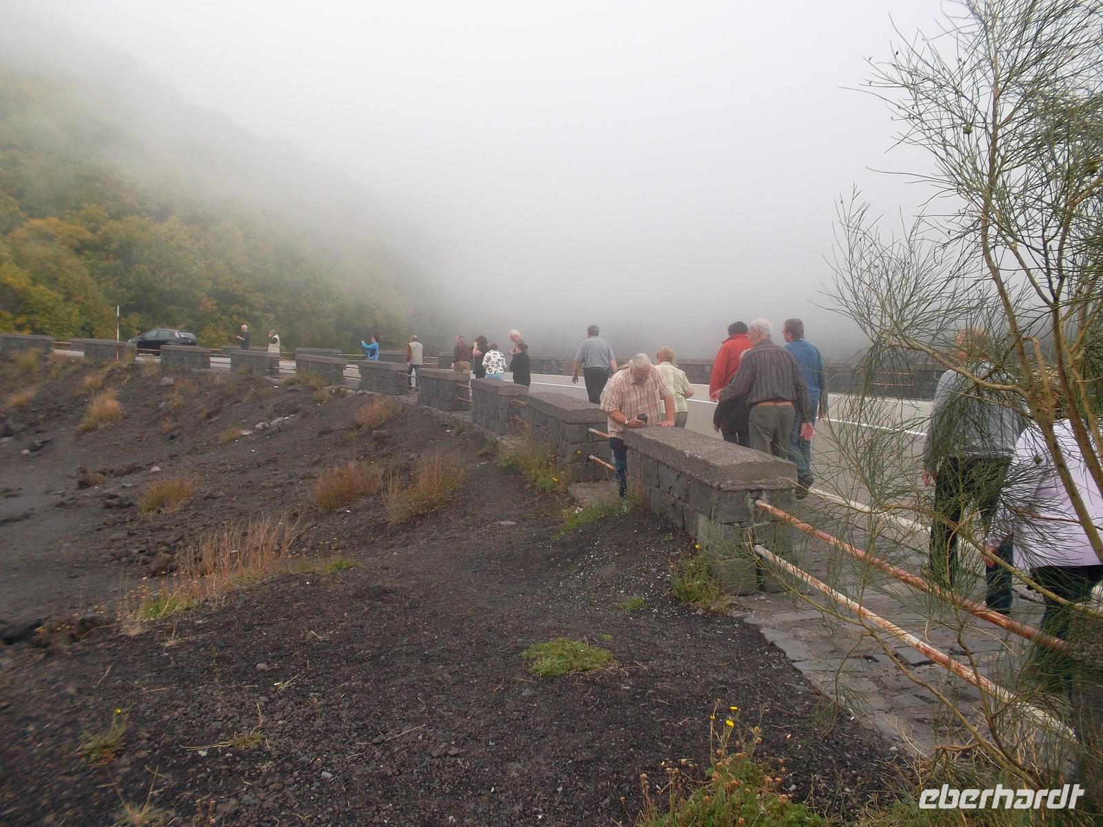 Recht früh brachen wir bei herrlichem Wetter auf, um Europas wohl bekanntesten Vulkan zu erreichen. Bereits bei der Auffahrt wurden die Gespräche immer leiser und weniger und als wir die Zone der verschiedenfarbigen Vulkanaschen kurz vor dem höchsten per Bus erreichbaren Punkt erreicht hatten, herrschte im Bus schon beinahe ehrfurchtsvolles Schweigen! Immer noch war herrliches Wetter und so entschlossen sich alle Reisenden, mit der Seilbahn noch 500 m weiter aufzufahren - bei 1935 m Höhe ü.M. liegt nämlich die Talstation der Ätna-Seilbahn! Sie ist nicht ganz billig, die Auffahrt, aber man wird mit einem Blick in die Unendlichkeit belohnt! Mehrere Dutzend Krater, alle einst verantwortlich für größere oder kleinere Ätna-Ausbrüche sieht man so ganz nebenbei und gleich nach Ankunft an der Bergstation kann man sich zwischen die alten Ascheströme wagen oder mit den UNIMOG-Allrad-Bussen noch ein paar Kilometer weiter fahren, bis man den alten „Pik der Philosophen" erreicht, wo vor ungefähr vierzig Jahren eine Eruption die Bergstation einfach „verschluckt" hatte. Bis heute ist es nicht möglich, eine Höhenangabe für Europas bekanntesten Vulkan zu machen, denn beinahe regelmäßig straft er die Messungen Lügen, sprengt seinen Kraterrand in die Luft und schüttet ihn an anderer Stelle neu auf.