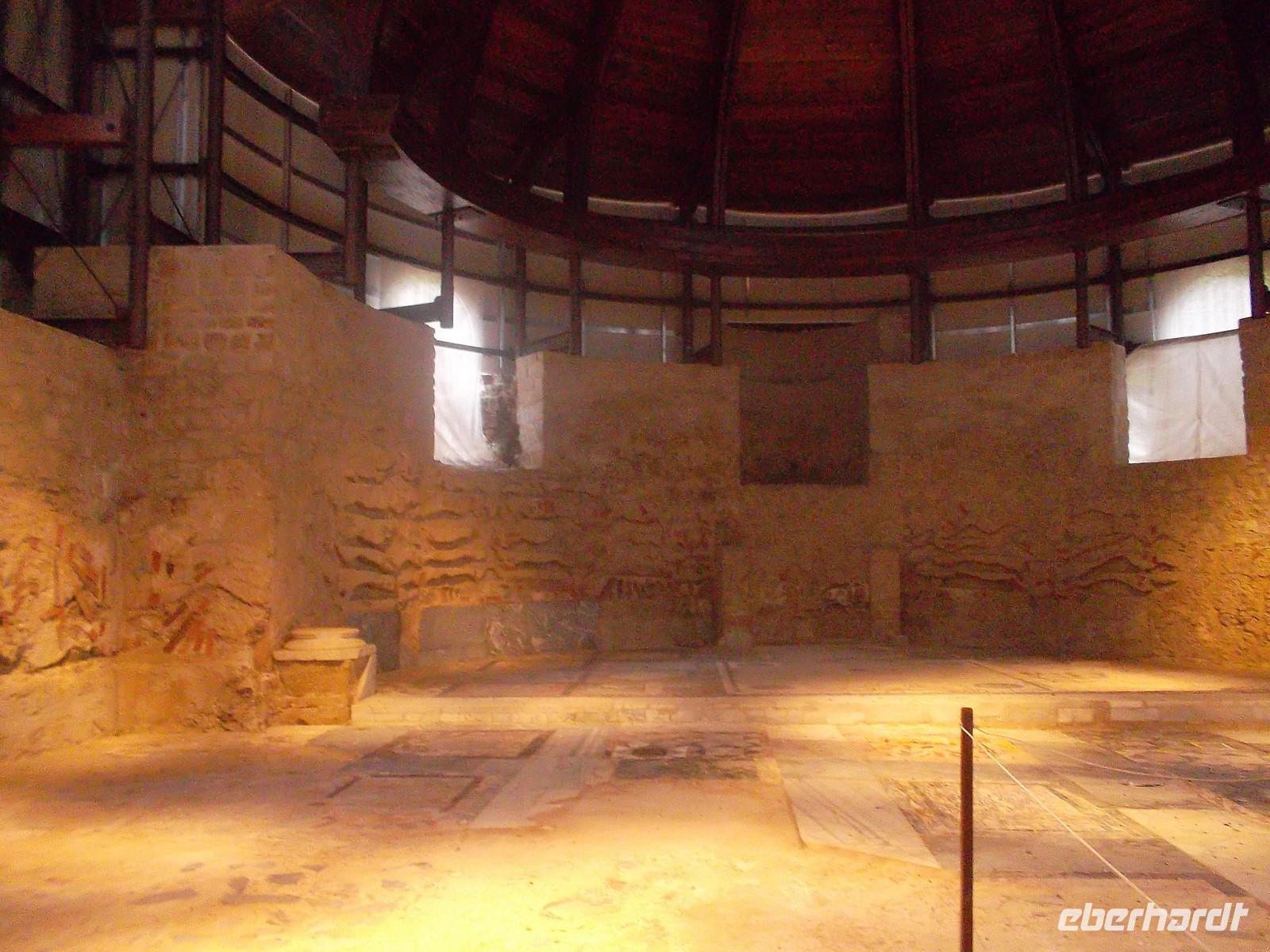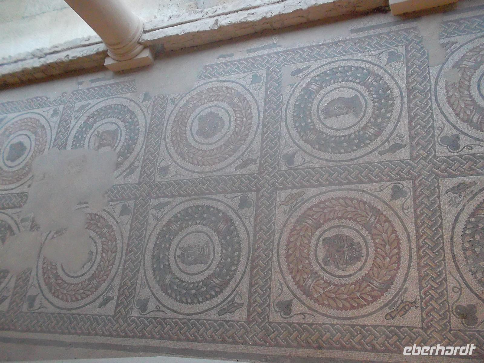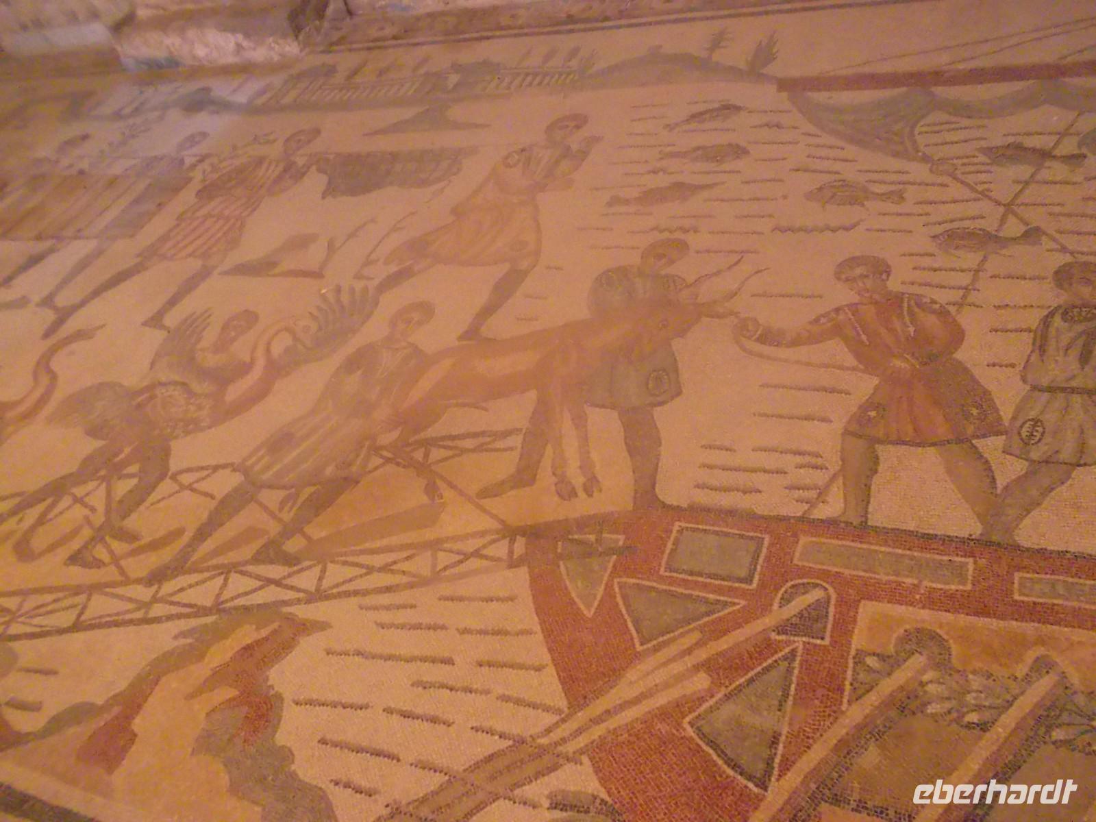 Der Bus brachte uns nun nach Piazza Armerina, jener Stadt, die für ihre etwas außerhalb gelegene römische Villa mit phantastischen Bodenmosaiken berühmt ist. Gerade frisch restauriert, zeugen die etwa 2000 Jahre alten Mosaik-Kunstwerke auf mehr als 3.500 m² Fläche von Kunstfertigkeit, Einfallsreichtum und Solidität ihrer Errichter. Seit langem ist die Villa mit ihren unschätzbaren Kunstwerken, zu denen Jagdszenen, mythologische Stoffe und natürlich die berühmten „Bikini-Mädchen" gehören, Bestandteil des UNESCO-Weltkulturerbes. Führerin Giusy brachte uns in ihrer charmanten Art all diese Kunstwerke und die Intentionen der Künstler vergangener Epochen nahe, bevor wir zur Übernachtung in unser Hotel nahe Agrigent fuhren,
