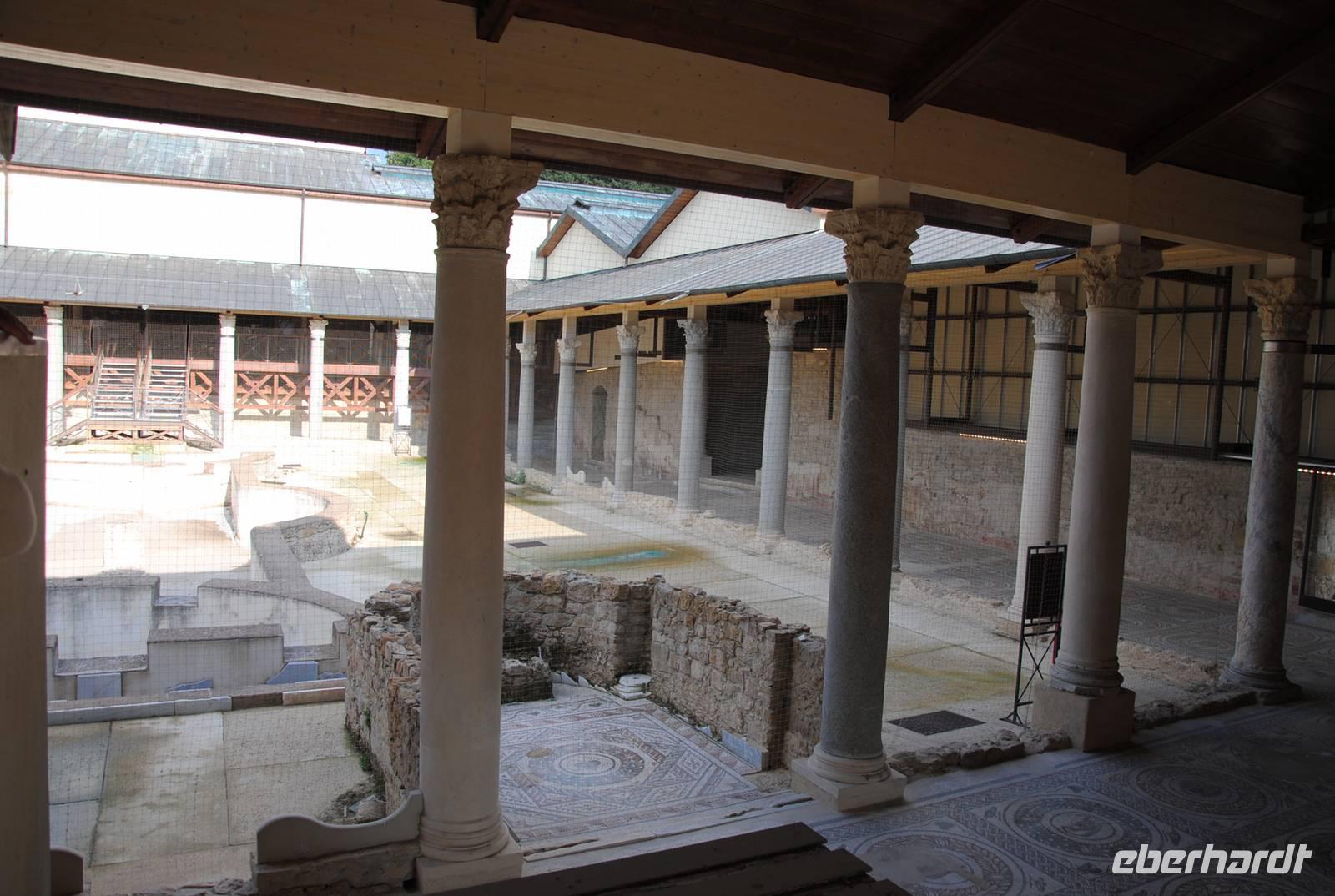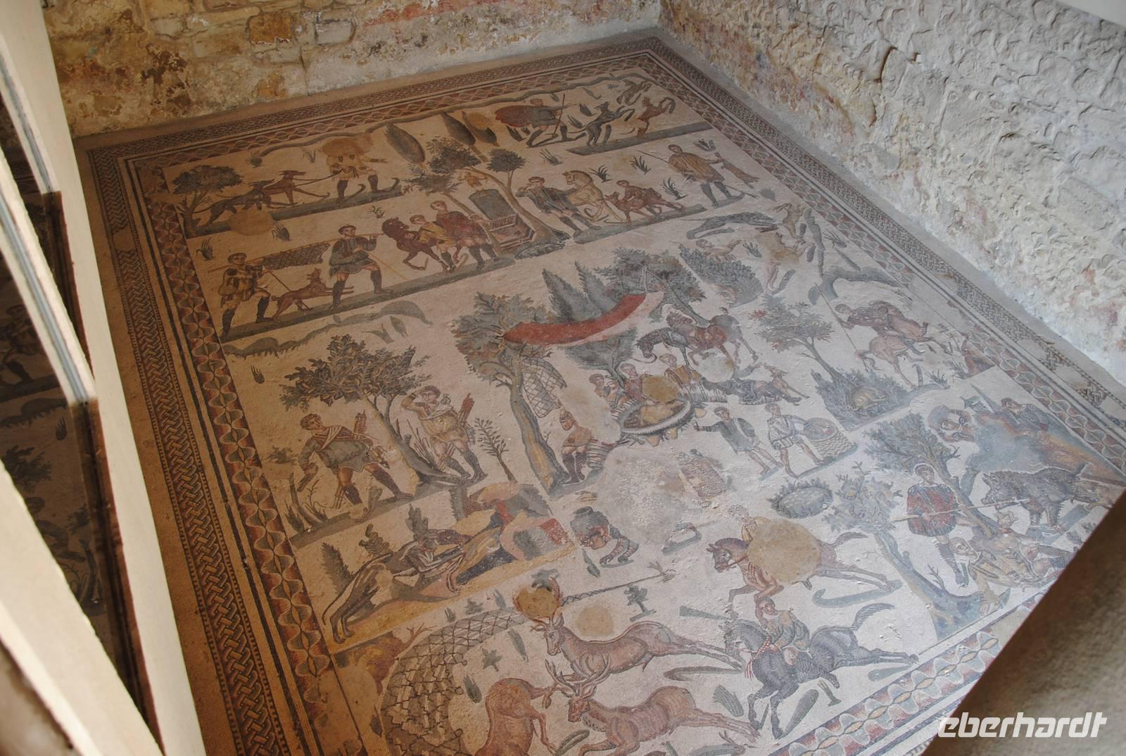 Das Leben ist zwar kein Wunschkonzert, aber dennoch können Wünsche in Erfüllung gehen. So auch am heutigen Tag, denn wir werden mit Sonne empfangen - ideale Voraussetzung für den Aufstieg zum Ätna. Das Wort kommt aus dem sankritischen und heißt so viel wie „die Brennende". Einst aus den Tiefen des Meeres entstanden hatte er vor rd. 600.000 Jahren eine Höhe von über 4.000 Meter. Seine ständige Tätigkeit höhlte das Innere aus bis es zum Einsturz der Kraterwände kam. Heute hat er eine Höhe von 3.354 Meter. Schon Johann Gottfried Seume war bei seinem Aufstieg 1802 vom Krater überwältigt. Wir durften heute dieses Erlebnis genießen. Der letzte Ausbruch war 2009. Auch bei unserem Besuch blieb es ruhig. Die Fahrt dorthin glich einer Fahrt durch die Vegitationszonen der Insel. Erst Pflanzen für warmes Klima. Dann Obstgärten. Im Anschluss daran Waldgebiet und danach Gebüsch, bevor am Ende nur mehr „schwarze Wüste" mit gelegentlichen Flechten und Moosen anzutreffen war. Von den griechischen Mythen ließen wir uns nicht beeindrucken und so ging es ein kleines Stück mit der Seilbahn und dann weiter mit Jeep nach oben und schon konnten wir das Naturschauspiel aus nächster Nähe betrachten. Auch bei der Kraterumrundung wurde es uns, trotz des leichten Windes, nicht wirklich kalt. Der Boden war warm und wer sich wärmen wollte, konnte dies am warmen Felsen tun. So kamen wir alle wohlbehalten wieder zurück und es ging weiter in Richtung Villa del Casale. Dort besuchten wir die Villa Romana mit ihren wunderschönen und einzigartigen Bodenmosaiken. Aufwendige Vorbereitungen waren notwendig bis man mit der eigentlichen Arbeit des Verlegens des Mosaikes beginnen konnte. Wir konnten sowohl figürliche als auch emblematische bzw. ornamentale Motive und Dekors bewundern. Darstellungen entstammen Alltagsszenen oder der Mythologie. Nach so viel Erlebten ging es schließlich zum Hotel.